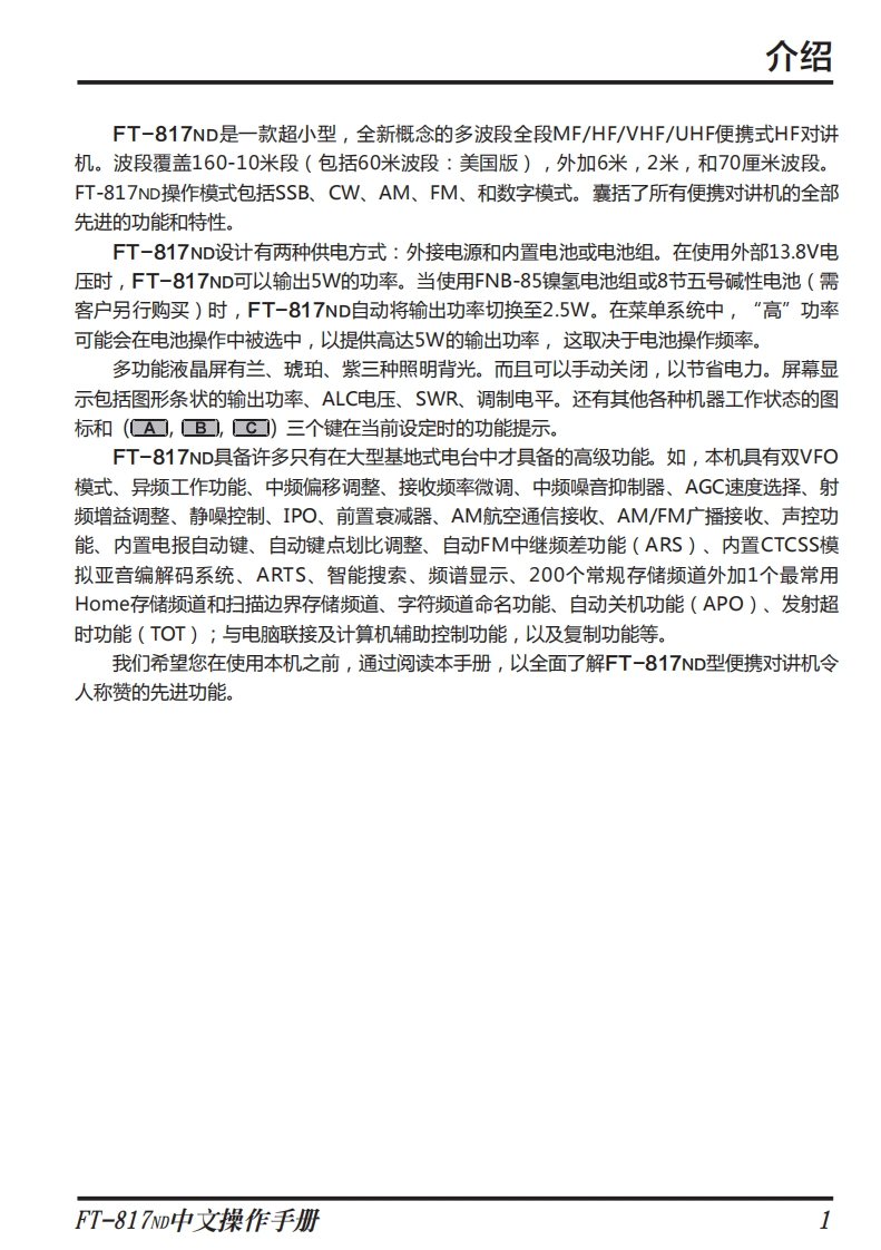 手册编号14:YAESU-FT-817ND用户使用操作说明书手册找手册网33天前发布关注私信10.64MB84页028手册编号14:YAESU-FT-817ND用户使用操作说明书手册此内容为付费资源,请付费后查看¥19¥21黄金会员免费钻石会员免费登录购买付费资源 第1页 / 共84页 第2页 / 共84页 第3页 / 共84页 第4页 / 共84页 第5页 / 共84页 试读已结束,还剩79页,您可下载完整版后进行离线阅读 THE END八重洲 文本预览 YAESUThe radioHFNHF/UHF全模式HF对讲机FT-817ND操作说明书八重洲无线株式会社日本东京都品川区东品川2-5-8号天王洲PARKSIDE BUILDING,140-0002八重洲电子设备科技(上海)有限公司中国上海自由贸易试验区西里路55号5F1007B,200131 查看更多 收起部分 喜欢就支持一下吧收藏