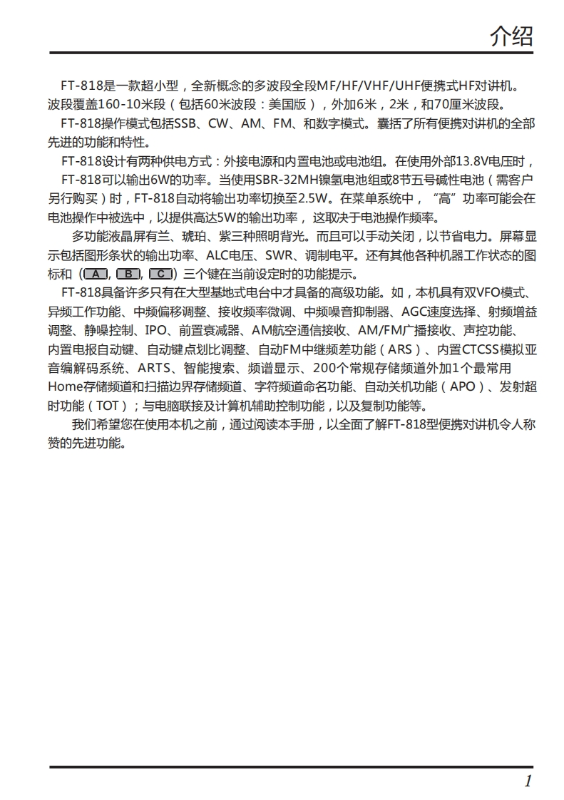 手册编号15:YAESU-FT-818ND用户使用操作说明书手册找手册网33天前发布关注私信16.89MB80页047手册编号15:YAESU-FT-818ND用户使用操作说明书手册此内容为付费资源,请付费后查看¥19¥21黄金会员免费钻石会员免费登录购买付费资源 第1页 / 共80页 第2页 / 共80页 第3页 / 共80页 第4页 / 共80页 第5页 / 共80页 试读已结束,还剩75页,您可下载完整版后进行离线阅读 THE END八重洲 文本预览 YAESUThe radioFT-818ND操作说明书HF/VHF/UHF全模式HF对讲机 查看更多 收起部分 喜欢就支持一下吧收藏