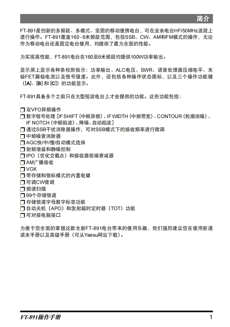 手册编号17:YAESU-FT-891(2)用户使用操作说明书手册找手册网33天前发布关注私信20.05MB61页044手册编号17:YAESU-FT-891(2)用户使用操作说明书手册此内容为付费资源,请付费后查看¥19¥21黄金会员免费钻石会员免费登录购买付费资源 第1页 / 共61页 第2页 / 共61页 第3页 / 共61页 第4页 / 共61页 第5页 / 共61页 试读已结束,还剩56页,您可下载完整版后进行离线阅读 THE END八重洲 文本预览 YA西SUThe radioFT-891操作手册HF/50MHz短波电台盟USBGUsB21日☑0.0@0F可网AM升网 查看更多 收起部分 喜欢就支持一下吧收藏