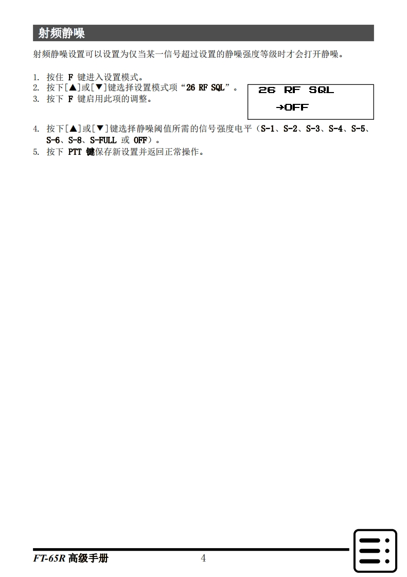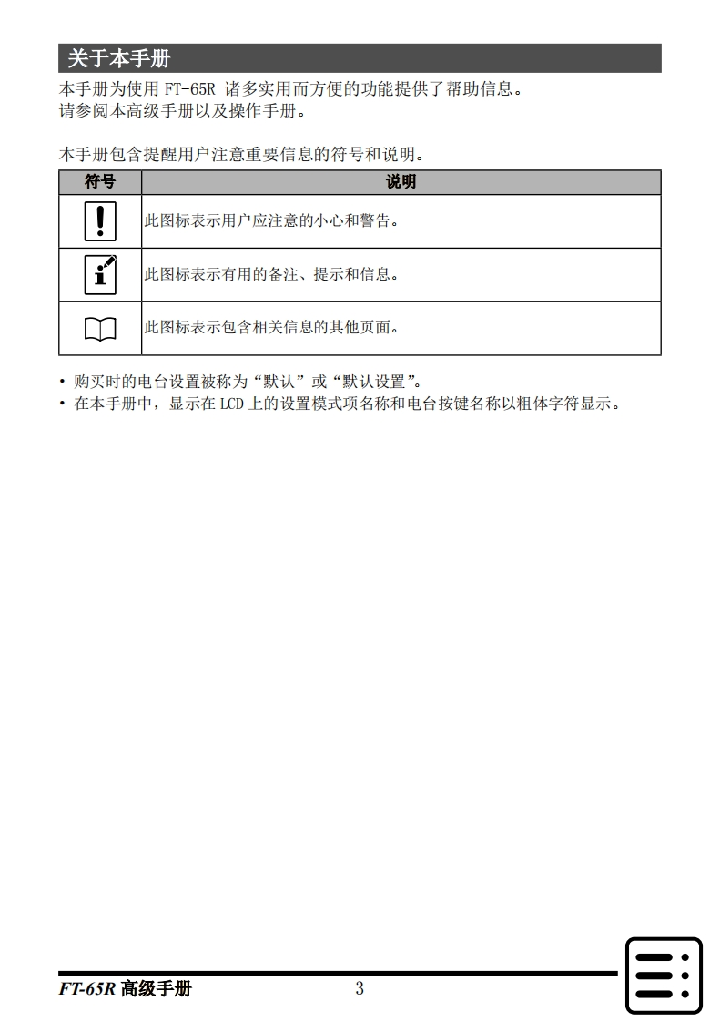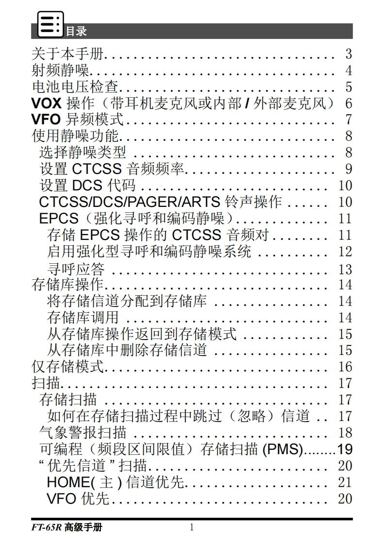 手册编号9:YAESU-FT-65R高级用户使用操作说明书手册找手册网32天前更新关注私信6.93MB39页040手册编号9:YAESU-FT-65R高级用户使用操作说明书手册此内容为免费资源,请登录后查看¥0 登录查看免费资源 第1页 / 共39页 第2页 / 共39页 第3页 / 共39页 第4页 / 共39页 第5页 / 共39页 该文档为免费文档,您可直接下载完整版进行阅读 THE END八重洲 文本预览 YADSUTheradio144/430MHz双频段调频电台FT-65R高级手册YAESUDUAL BAND TRANSCEIVERFT-65446.500■■■■■P1P2P3P472ABC3DEF4GHI5JKL6MNO7PORS8TUV9WXYZ米VIMOSET#BAND单击(点击)当前浏览页面右下角的目,将随时返回内容页面。E 查看更多 收起部分 喜欢就支持一下吧收藏