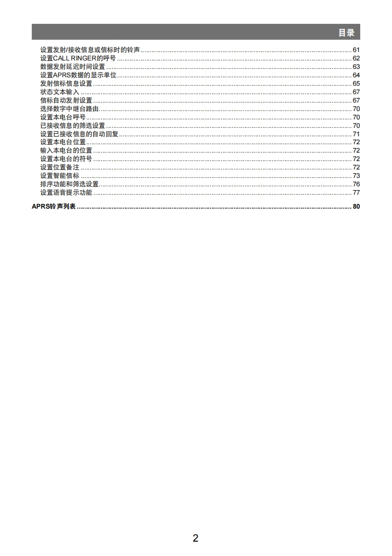手册编号25:YAESU-FTM-100DR-APRS用户使用操作说明书手册找手册网32天前更新关注私信34.79MB82页038手册编号25:YAESU-FTM-100DR-APRS用户使用操作说明书手册此内容为免费资源,请登录后查看¥0 登录查看免费资源 第1页 / 共82页 第2页 / 共82页 第3页 / 共82页 第4页 / 共82页 第5页 / 共82页 该文档为免费文档,您可直接下载完整版进行阅读 THE END八重洲 文本预览 YA西GJThe radioC4FM/FM 144/430MHz双频段电台FTM-100DR说明手册(APRS版)感谢您购买Yaesu的产品。本说明手册介绍有关“APRS功能”的信息。有关电台的基本操作信息,请参考FTM-1O0DR随附的操作手册。本手册内所列公司和产品名称为相应公司的商标和注册商标。 查看更多 收起部分 喜欢就支持一下吧收藏