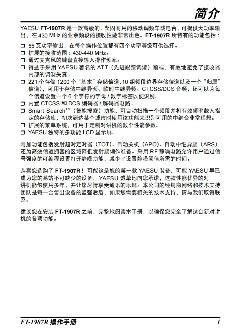 手册编号50:YAESU-FTM-1907R用户使用操作说明书手册找手册网33天前更新关注私信6.20MB88页050手册编号50:YAESU-FTM-1907R用户使用操作说明书手册此内容为免费资源,请登录后查看¥0 登录查看免费资源 第1页 / 共88页 第2页 / 共88页 第3页 / 共88页 第4页 / 共88页 第5页 / 共88页 该文档为免费文档,您可直接下载完整版进行阅读 THE END八重洲 文本预览 YAESUThe radio调频车载电台FT-1907RCHN操作手册13200099BUSY八重洲无线株式会社昊奎鼎慕森品八32580o02 查看更多 收起部分 喜欢就支持一下吧收藏