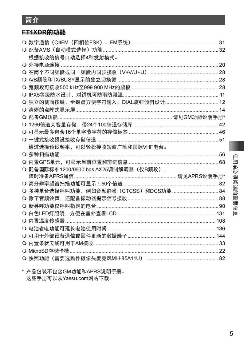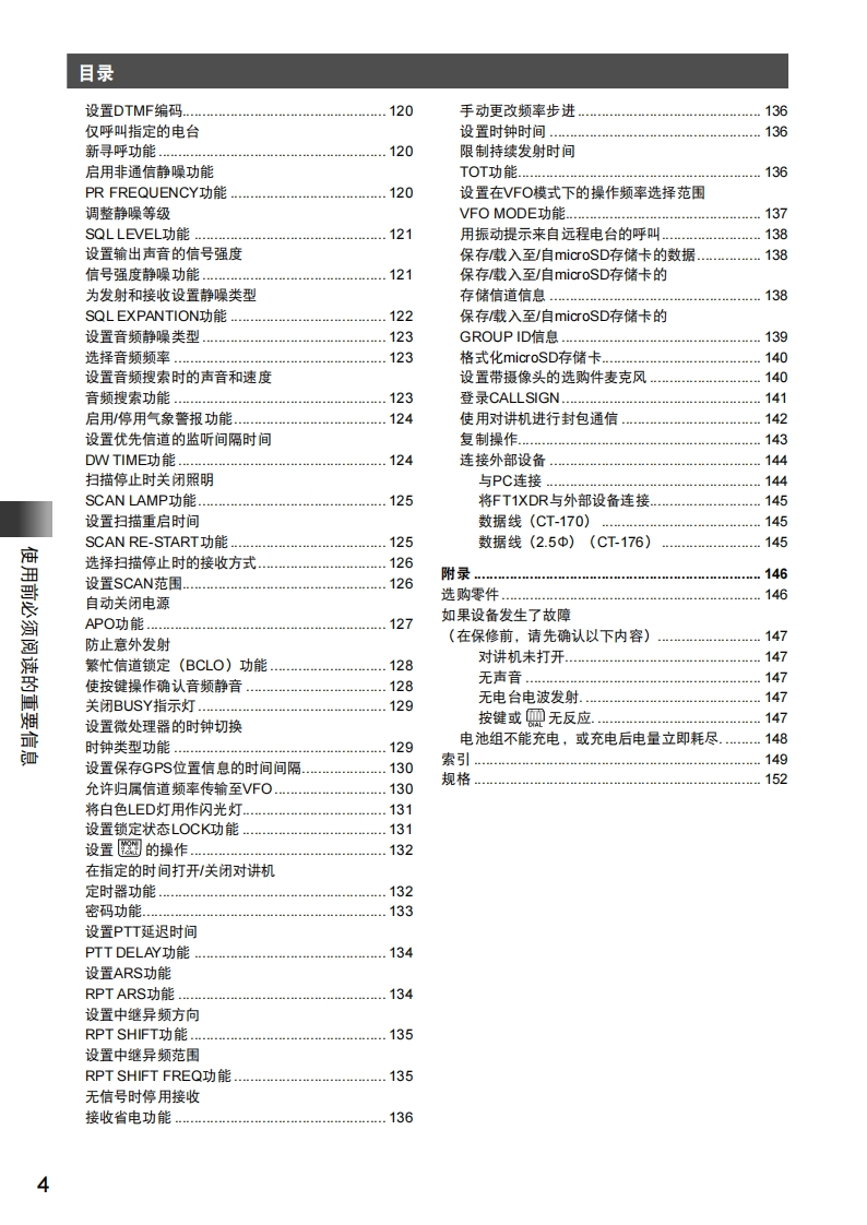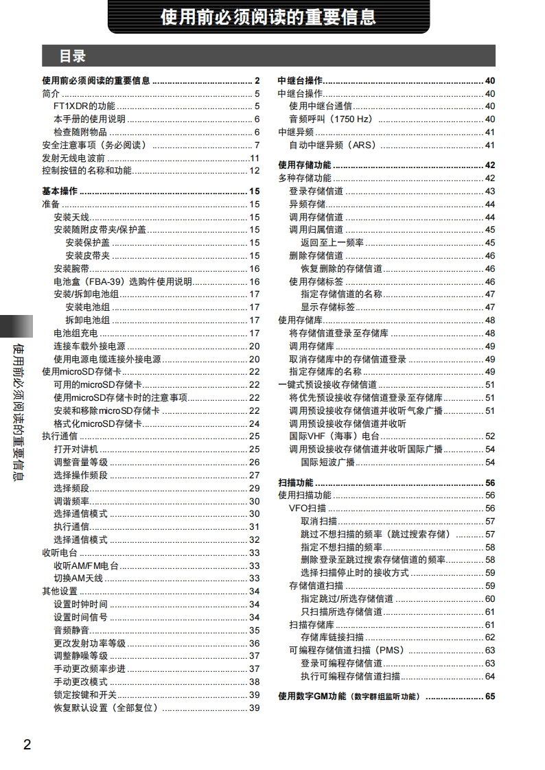 手册编号66:YAESU-FT1XDR用户使用操作说明书手册找手册网32天前更新关注私信24.01MB154页040手册编号66:YAESU-FT1XDR用户使用操作说明书手册此内容为免费资源,请登录后查看¥0 登录查看免费资源 第1页 / 共154页 第2页 / 共154页 第3页 / 共154页 第4页 / 共154页 第5页 / 共154页 该文档为免费文档,您可直接下载完整版进行阅读 THE END八重洲 文本预览 YAESUThe radioFT1XDR144/430MHz数字/模拟对讲机操作手册C4FM/FM使用前必须阅读的重要信息基本操作中继台操作使用存储功能Diaital扫描功能YAESUUFO432.500使用数字GM功能EHi阳DN4:999。Fm使用APRS功能FT1XDA/B使用GPS功能便利功能F2ABCn与指定的远程电台通信V/MENT797必要时使用的功能附录 查看更多 收起部分 喜欢就支持一下吧收藏