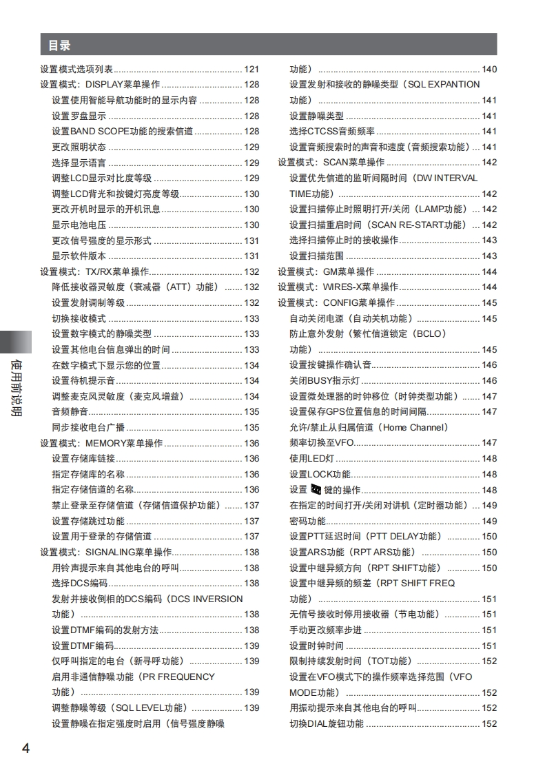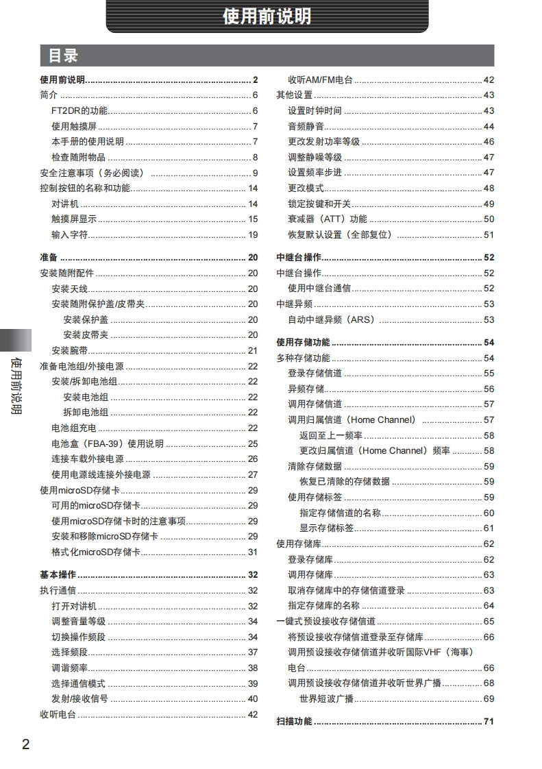 手册编号68:YAESU-FT2DR用户使用操作说明书手册找手册网32天前更新关注私信38.92MB172页036手册编号68:YAESU-FT2DR用户使用操作说明书手册此内容为免费资源,请登录后查看¥0 登录查看免费资源 第1页 / 共172页 第2页 / 共172页 第3页 / 共172页 第4页 / 共172页 第5页 / 共172页 该文档为免费文档,您可直接下载完整版进行阅读 THE END八重洲 文本预览 YAESUThe radioFT2DR144/430MHz数字/模拟对讲机操作手册C4FM/FM使用前说明准备基本操作YAESU中继台操作)四146.520使用存储功能VOLAH工446.500扫描功能FMHI数字群组监听功能FM四TXDNMODE使用APRS功能DigitalFT2D使用GPS功能BACKIDISPBANDA/BV/M便捷功能与指定的其他电台通信为个人使用定制菜单设置(设置模式)必要时使用的功能附录 查看更多 收起部分 喜欢就支持一下吧收藏