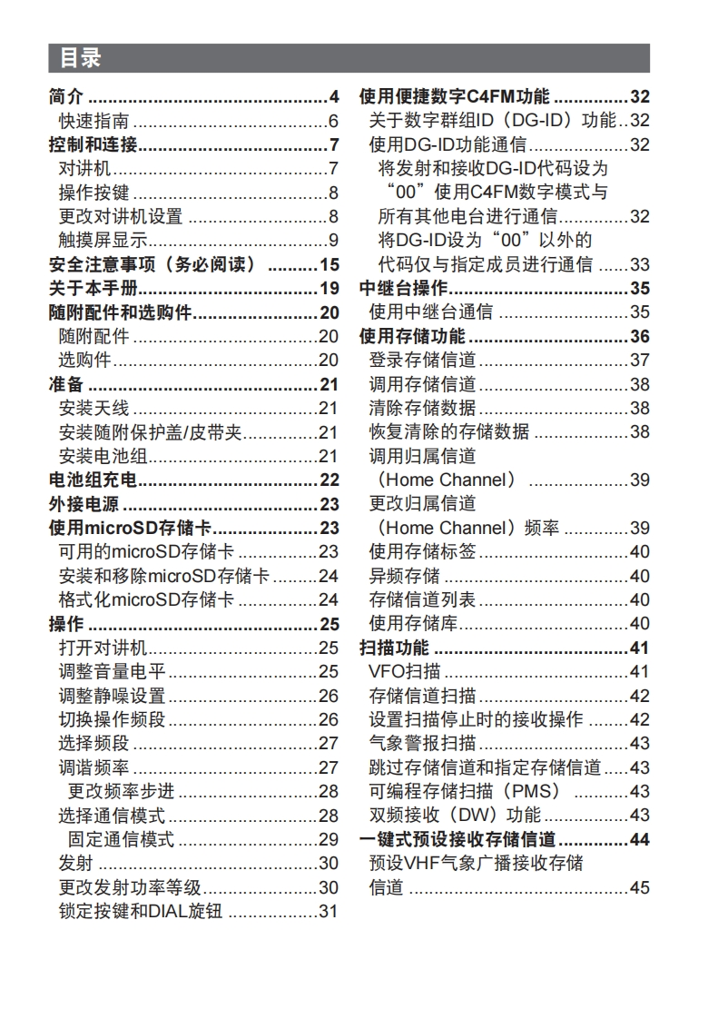 手册编号73:YAESU-FT3DR用户使用操作说明书手册找手册网33天前更新关注私信16.63MB104页048手册编号73:YAESU-FT3DR用户使用操作说明书手册此内容为免费资源,请登录后查看¥0 登录查看免费资源 第1页 / 共104页 第2页 / 共104页 第3页 / 共104页 第4页 / 共104页 第5页 / 共104页 该文档为免费文档,您可直接下载完整版进行阅读 THE END八重洲 文本预览 YAESUC4FM/FM 144/430MHz双频段数字对讲机FT3DR操作手册GPS500TXO1RXO1146.5206445.500F MW AUTO MODEKAESUFT3DBACK DISP BANDGMA/B月VIMBluetooth 查看更多 收起部分 喜欢就支持一下吧收藏