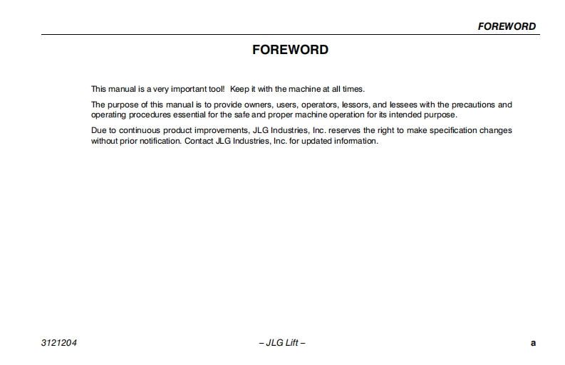 600AJ_操作与维修说明书手册找手册网昨天发布关注私信2.15MB148页033600AJ_操作与维修说明书手册此内容为付费资源,请付费后查看¥19¥21黄金会员免费钻石会员免费立即购买您当前未登录!建议登陆后购买,可保存购买订单付费资源 第1页 / 共148页 第2页 / 共148页 第3页 / 共148页 第4页 / 共148页 第5页 / 共148页 第6页 / 共148页 第7页 / 共148页 第8页 / 共148页 第9页 / 共148页 第10页 / 共148页 试读已结束,还剩138页,您可下载完整版后进行离线阅读 THE ENDJLG 文本预览 GOperation and Safety ManualOriginal Instructions-Keep this manual with the machine at all times.Boom Lift Models600A600AUANSI(∈⑤3121204Aug/s25,2010 查看更多 收起部分 喜欢就支持一下吧收藏