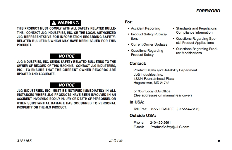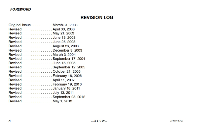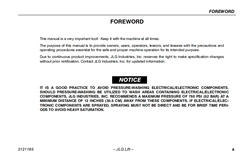 JLG-2630ES-Operations-Manual操作与维护保养说明书手册找手册网昨天发布关注私信5.02MB116页041JLG-2630ES-Operations-Manual操作与维护保养说明书手册此内容为付费资源,请付费后查看¥19¥21黄金会员免费钻石会员免费立即购买您当前未登录!建议登陆后购买,可保存购买订单付费资源 第1页 / 共116页 第2页 / 共116页 第3页 / 共116页 第4页 / 共116页 第5页 / 共116页 第6页 / 共116页 第7页 / 共116页 第8页 / 共116页 第9页 / 共116页 第10页 / 共116页 试读已结束,还剩106页,您可下载完整版后进行离线阅读 THE ENDJLG 文本预览 卫GAn Oshkosh Corporation CompanyOperation and Safety ManualOriginal Instructions,Keep this manual with the machine at all times.Models1930ES/2030ES/2630ES/2646ES/3246EANSI C∈⑤P/N-3121165May1,2013 查看更多 收起部分 喜欢就支持一下吧收藏