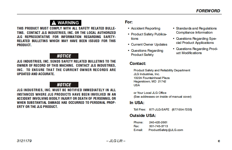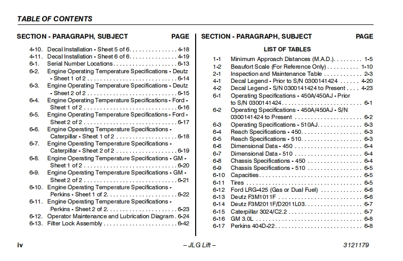 JLG-510AJ-Operations-Manual操作与维护保养说明书手册找手册网昨天发布关注私信2.44MB132页029JLG-510AJ-Operations-Manual操作与维护保养说明书手册此内容为付费资源,请付费后查看¥19¥21黄金会员免费钻石会员免费立即购买您当前未登录!建议登陆后购买,可保存购买订单付费资源 第1页 / 共132页 第2页 / 共132页 第3页 / 共132页 第4页 / 共132页 第5页 / 共132页 第6页 / 共132页 第7页 / 共132页 第8页 / 共132页 第9页 / 共132页 第10页 / 共132页 试读已结束,还剩122页,您可下载完整版后进行离线阅读 THE ENDJLG 文本预览 GAn Oshkosh Corperation CompanyOperation and Safety ManualOriginal Instructions-Keep this manual with the machine at all timesBoom Lift Models450A Series Il450AJ Series Il510AUANSI C∈⑧3121179May8,2012 查看更多 收起部分 喜欢就支持一下吧收藏