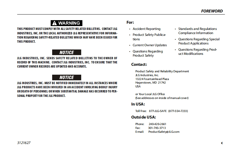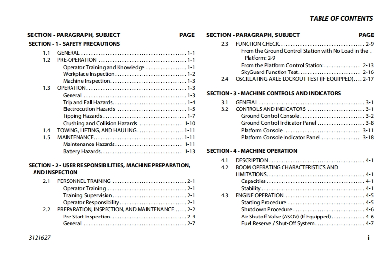 JLG-800AJ-Operations-Manual操作与维护保养说明书手册找手册网昨天发布关注私信4.73MB160页030JLG-800AJ-Operations-Manual操作与维护保养说明书手册此内容为付费资源,请付费后查看¥19¥21黄金会员免费钻石会员免费立即购买您当前未登录!建议登陆后购买,可保存购买订单付费资源 第1页 / 共160页 第2页 / 共160页 第3页 / 共160页 第4页 / 共160页 第5页 / 共160页 第6页 / 共160页 第7页 / 共160页 第8页 / 共160页 第9页 / 共160页 第10页 / 共160页 试读已结束,还剩150页,您可下载完整版后进行离线阅读 THE ENDJLG 文本预览 GAn Oshkosh Corporation GompanyOperation and Safety ManualOriginal Instructions-Keep this manual with the machine at alltimes.Boom Lift Models800A800AJS/N0300183034to0300272376ANSI(E①3121627August 26,2020-Rev J 查看更多 收起部分 喜欢就支持一下吧收藏