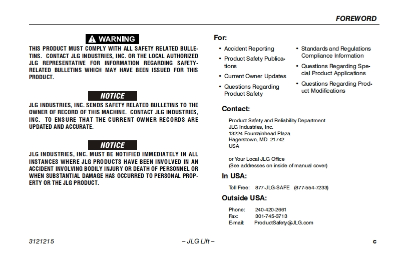 JLG-E400-Operations-Manual操作与维护保养说明书手册找手册网昨天发布关注私信1.50MB118页029JLG-E400-Operations-Manual操作与维护保养说明书手册此内容为付费资源,请付费后查看¥19¥21黄金会员免费钻石会员免费立即购买您当前未登录!建议登陆后购买,可保存购买订单付费资源 第1页 / 共118页 第2页 / 共118页 第3页 / 共118页 第4页 / 共118页 第5页 / 共118页 第6页 / 共118页 第7页 / 共118页 第8页 / 共118页 第9页 / 共118页 第10页 / 共118页 试读已结束,还剩108页,您可下载完整版后进行离线阅读 THE ENDJLG 文本预览 GOperation and Safety ManualOriginal Instructions-Keep this manual with the machine at all times.Boom Lift ModelsE400AE400A NarrowE400AJPE400AJP NarrowM400AM400A NarrowM400AJPM400AJP NarrowANSI(∈①3121215January 7,2013 查看更多 收起部分 喜欢就支持一下吧收藏