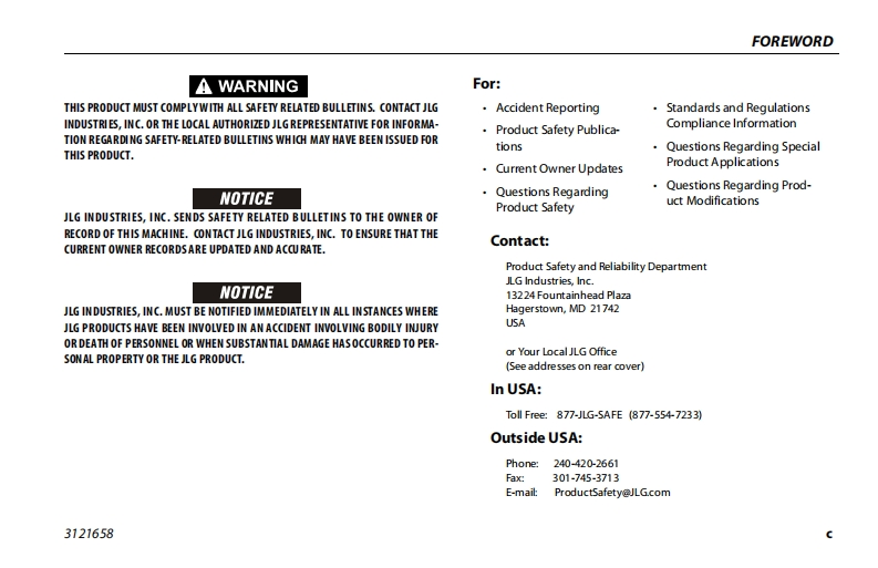JLG-E450AJ-E-Operations-Manual操作与维护保养说明书手册找手册网昨天发布关注私信6.90MB152页049JLG-E450AJ-E-Operations-Manual操作与维护保养说明书手册此内容为付费资源,请付费后查看¥19¥21黄金会员免费钻石会员免费立即购买您当前未登录!建议登陆后购买,可保存购买订单付费资源 第1页 / 共152页 第2页 / 共152页 第3页 / 共152页 第4页 / 共152页 第5页 / 共152页 第6页 / 共152页 第7页 / 共152页 第8页 / 共152页 第9页 / 共152页 第10页 / 共152页 试读已结束,还剩142页,您可下载完整版后进行离线阅读 THE ENDJLG 文本预览 GOperation and Safety ManualOriginal Instructions-Keep this manual with the machine at all times.Boom Lift Models450A450AJ5/N0300201991,5/N1300007279,S/NE300002833,&S/WB300003516to PresentANSIC∈@AS/NzS3121658December 14,2018-Rev K 查看更多 收起部分 喜欢就支持一下吧收藏