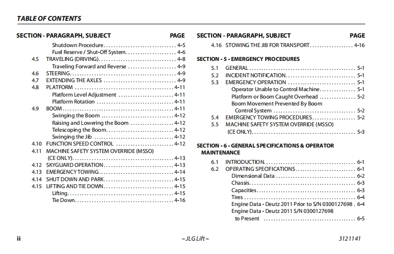 JLG1350SJP-Operations-Manual操作与维护保养说明书手册找手册网23小时前发布关注私信3.52MB134页046JLG1350SJP-Operations-Manual操作与维护保养说明书手册此内容为付费资源,请付费后查看¥19¥21黄金会员免费钻石会员免费立即购买您当前未登录!建议登陆后购买,可保存购买订单付费资源 第1页 / 共134页 第2页 / 共134页 第3页 / 共134页 第4页 / 共134页 第5页 / 共134页 第6页 / 共134页 第7页 / 共134页 第8页 / 共134页 第9页 / 共134页 第10页 / 共134页 试读已结束,还剩124页,您可下载完整版后进行离线阅读 THE ENDJLG 文本预览 GAn Oshkosh Corporation CompanyOperation and Safety ManualOriginal Instructions-Keep this manual with the machine at all times.Boom Lift Models1200SJP1350SJPANSI C∈@3121141January 5,2015 查看更多 收起部分 喜欢就支持一下吧收藏