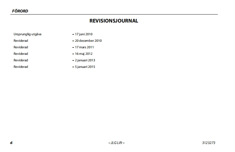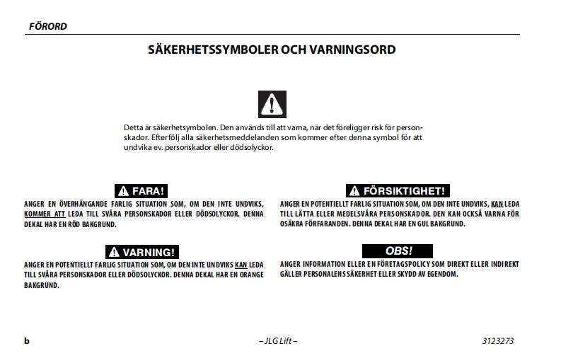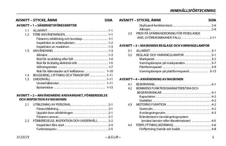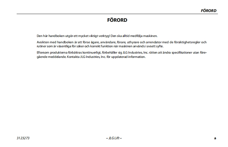 JLG340AJ操作说明书手册找手册网23小时前发布关注私信6.41MB118页041JLG340AJ操作说明书手册此内容为付费资源,请付费后查看¥19¥21黄金会员免费钻石会员免费立即购买您当前未登录!建议登陆后购买,可保存购买订单付费资源 第1页 / 共118页 第2页 / 共118页 第3页 / 共118页 第4页 / 共118页 第5页 / 共118页 第6页 / 共118页 第7页 / 共118页 第8页 / 共118页 第9页 / 共118页 第10页 / 共118页 试读已结束,还剩108页,您可下载完整版后进行离线阅读 THE ENDJLG 文本预览 GAn Oshkosh Corporation CompanyInstruktions-och sakerhetshandbokOriginalinstruktioner-Forvara alltid handboken tillsammans med maskinen.Bomliftmodeller340AJANSI CE3123273January 5,2015Swedish-Operation and Safety 查看更多 收起部分 喜欢就支持一下吧收藏