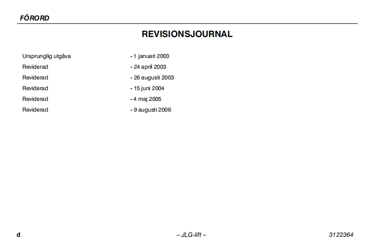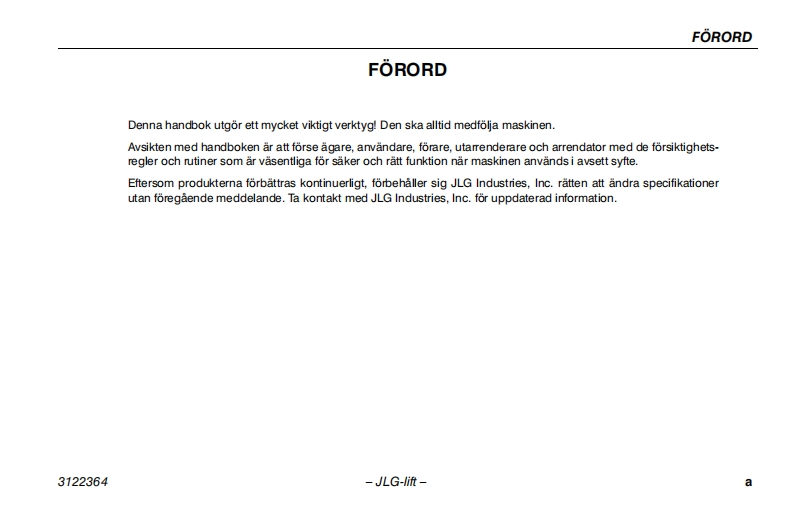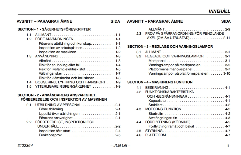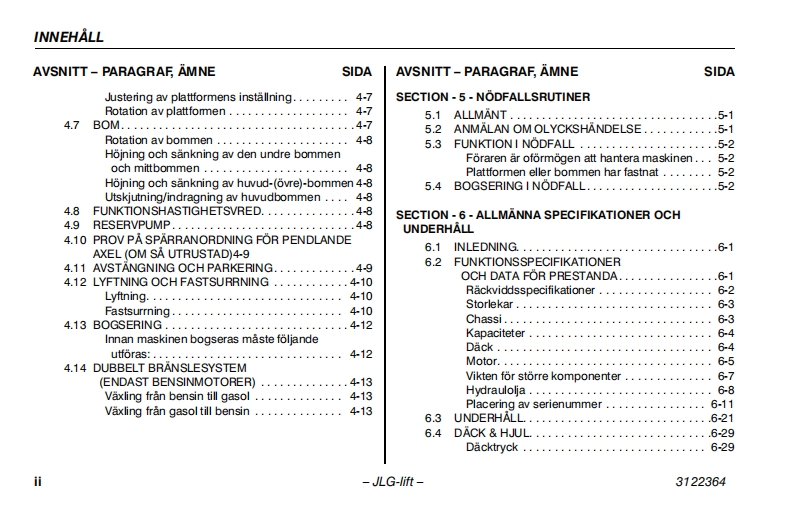 JLG450aj-Serie2操作说明书手册找手册网21小时前发布关注私信3.35MB110页049JLG450aj-Serie2操作说明书手册此内容为付费资源,请付费后查看¥19¥21黄金会员免费钻石会员免费立即购买您当前未登录!建议登陆后购买,可保存购买订单付费资源 第1页 / 共110页 第2页 / 共110页 第3页 / 共110页 第4页 / 共110页 第5页 / 共110页 第6页 / 共110页 第7页 / 共110页 第8页 / 共110页 第9页 / 共110页 第10页 / 共110页 试读已结束,还剩100页,您可下载完整版后进行离线阅读 THE ENDJLG 文本预览 GInstruktions-och sakerhetshandbokBomliftmodeller450A Serie lI450AJ Serie Il510AU3122364日1S09001ANSI(E⑧9 augusti 2006Swedish-Operators Safety 查看更多 收起部分 喜欢就支持一下吧收藏