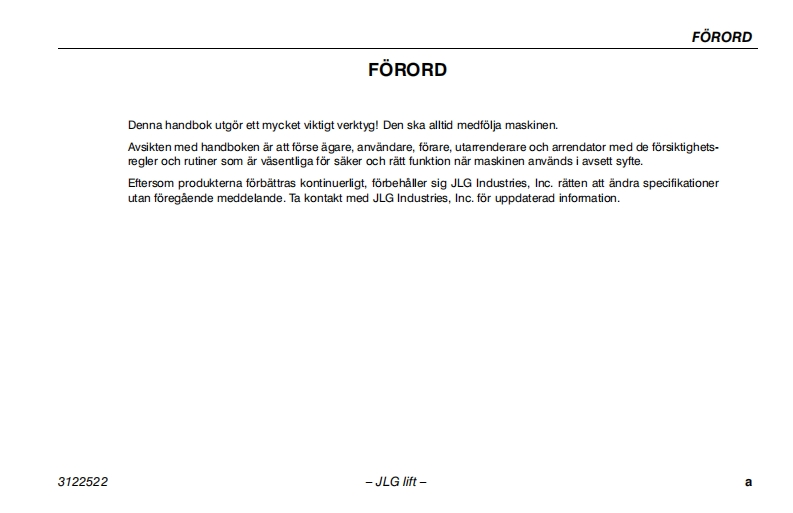 JLG460sj操作说明书手册找手册网21小时前发布关注私信3.21MB118页049JLG460sj操作说明书手册此内容为付费资源,请付费后查看¥19¥21黄金会员免费钻石会员免费立即购买您当前未登录!建议登陆后购买,可保存购买订单付费资源 第1页 / 共118页 第2页 / 共118页 第3页 / 共118页 第4页 / 共118页 第5页 / 共118页 第6页 / 共118页 第7页 / 共118页 第8页 / 共118页 第9页 / 共118页 第10页 / 共118页 试读已结束,还剩108页,您可下载完整版后进行离线阅读 THE ENDJLG 文本预览 GInstruktions-och sakerhetshandbokBomliftmodeller400S460SJ3122522a109001ANSI CC2 augusti 2006Swedish-Operators Safety 查看更多 收起部分 喜欢就支持一下吧收藏