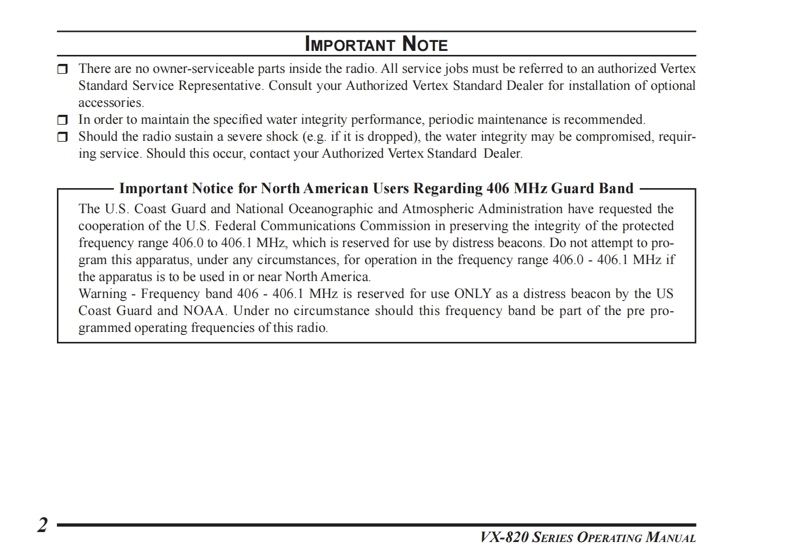 vertexstandardvx821_操作说明书手册找手册网32天前发布关注私信1.82MB40页047vertexstandardvx821_操作说明书手册此内容为付费资源,请付费后查看¥19¥21黄金会员免费钻石会员免费登录购买付费资源 第1页 / 共40页 第2页 / 共40页 第3页 / 共40页 第4页 / 共40页 第5页 / 共40页 试读已结束,还剩35页,您可下载完整版后进行离线阅读 THE END威泰克斯 文本预览 Ss Vertex StandardVX-820 SERIESOPERATING MANUAL0而Vertex Standard○Vertex Standard○Vertex StandarAAED16-KEY VERSION4-KEY VERSIONNON-LCD VERSIONVertex Standard LMR.Inc. 查看更多 收起部分 喜欢就支持一下吧收藏
