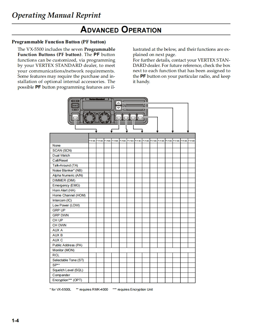 S Vertex StandardVERTEX STANDARD CO.,LTD.4-8-8 Nakameguro,Meguro-Ku,Tokyo 153-8644,JapanVERTEX STANDARDUS HeadquartersVHF Low-Band FM Transceiver10900 Walker Street,Cypress,CA 90630,U.S.A.YAESU EUROPE B.V.VX-5500LP.O.Box 75525,1118 ZN Schiphol,The NetherlandsYAESU UK LTD.Service ManualUnit 12,Sun Valley Business Park,Winnall CloseWinchester,Hampshire,SO23 OLB.U.K.VERTEX STANDARD HK LTD.@2005 VERTEX STANDARD CO.,LTD.EC034L90AUnit 5,20/F.,Seaview Centre,139-141 Hoi Bun Road,Kwun Tong,Kowloon,Hong KongERIntroductionThis manual provides technical information necessary for servicing the VX-5500L FM Transceiver.Servicing this equipment requires expertise in handling surface-mount chip components.Attempts by non-qualifiedpersons to service this equipment may result in permanent damage not covered by the warranty,and may be illegal insome countries.Two PCB layout diagrams are provided for each double-sided circuit board in the Transceiver.Each side of is referredto by the type of the majority of components installed on that side("leaded"or"chip-only").In most cases one side hasonly chip components,and the other has either a mixture of both chip and leaded components(trimmers,coils,electrolyticcapacitors,ICs,etc.),or leaded components only.While we believe the technical information in this manual to be correct,VERTEX STANDARD assumes no liabilityfor damage that may occur as a result of typographical or other errors that may be present.Your cooperation in pointingout any inconsistencies in the technical information would be appreciated.ContentsOperating Manual Reprint........................1-1Board Unit(Schematics,Layouts Parts)☑0 i.2-MAIN Unit.…6A-lDISPLAYUnit......6B-1Specifications.......2-2KEYUnit.....6C-1Exploded View Miscellaneous Parts...3-1VR Unit.…6D-1Block Diagram….3-2MIC CONN Unit.6D-2Interconnection Diagram...3-4NB Unit.6E-1Optional Board Unit(Schematics,Layouts Parts)Circuit Description4-F2D-82-Tone Decode Unit........................A-1Alignment….5-1VTP-50 VX-Trunk Unit .........7B-1FVP-25 Encryption/DTMF Pager Unit ........C-1F5D-145-Tone Unit.D-1FIF-7A Connection Unit.......E-1