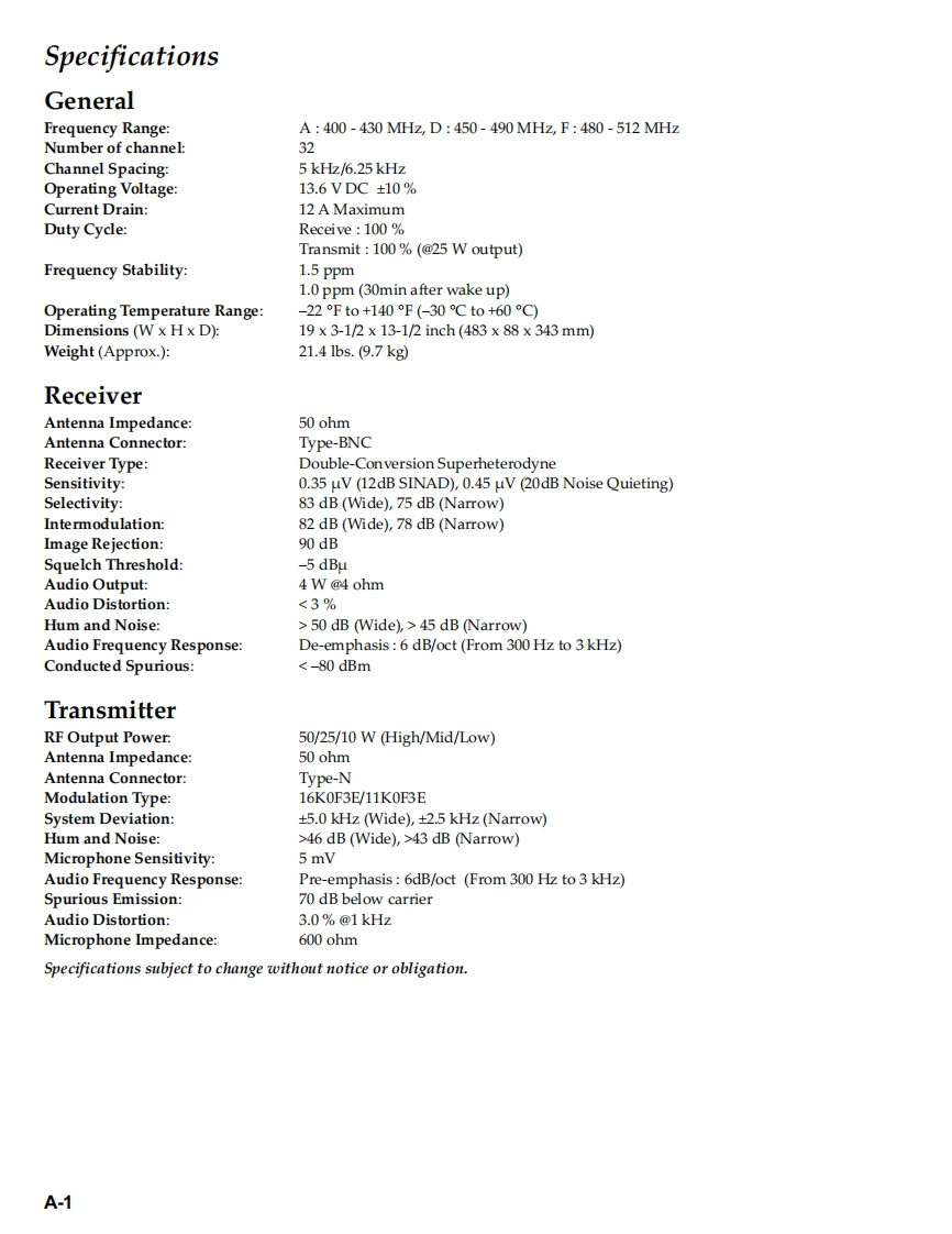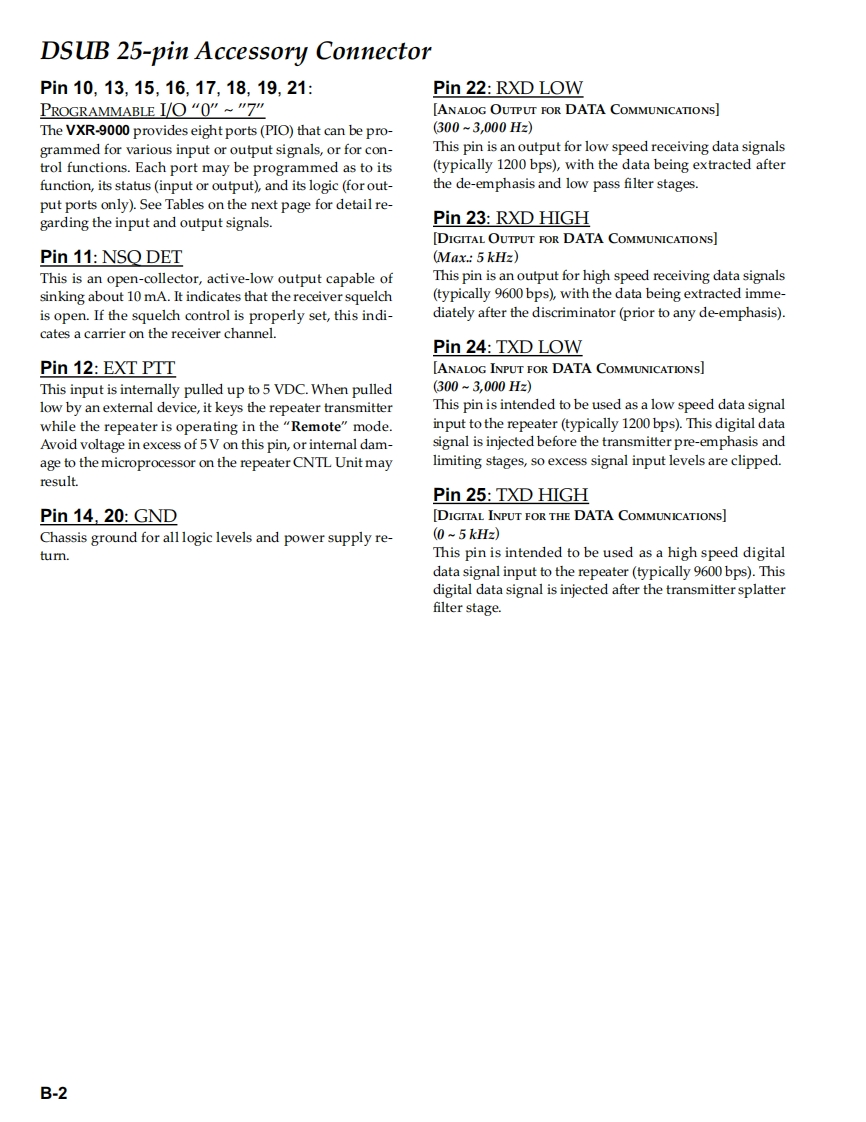 Vertex StandardVERTEX STANDARD CO.,LTD.4-8-8 Nakameguro,Meguro-Ku,Tokyo 153-8644,JapanVERTEX STANDARDRack Mount RepeaterUS Headquarters10900 Walker Street,Cypress,CA 90630.U.S.A.YAESU EUROPE B.V.VXR-9000(UHF)P.O.Box 75525,1118 ZN Schiphol,The NetherlandsYAESU UK LTD.Unit 12,Sun Valley Business Park,Winnall CloseService ManualWinchester,Hampshire,SO23 OLB.U.K.VERTEX STANDARD HK LTD.Unit 5,20/F.,Seaview Centre,139-141 Hoi Bun Road,Kwun Tong,Kowloon,Hong KongC2003 VERTEX STANDARD CO.,LTD.EC044U90AIntroductionThis manual provides the technical information necessary for servicing the VXR-9000 Rack Mount Repeater.Servicing this equipment requires expertise in handing surface-mount chip components.Attempts by non-qualifiedpersons to service this equipment may result in permanent damage not covered by the warranty,and may be illegal insome countries.Two PCB layout diagrams are provided for each double-sided board in this transceiver.Each side of the board isreferred to by the type of the majority of components installed on that side("Side A"or"Side B").In most cases oneside has only chip components(surface-mount devices),and the other has either a mixture of both chip and leadedcomponents(trimmers,coils,electrolytic capacitors,ICs,etc.),or leaded components only.As described in the pages to follow,the advanced microprocessor design of the VXR-9000 allows a complete align-ment of this transceiver to be performed without opening the case of the radio;all adjustments can be performed fromthe personal computer,using with the Vertex Standard VPL-1 Programming Cable and CE60 Software.While we believe the information in this manual to be correct,Vertex Standard assumes no liability for damage thatmay occur as a result of typographical or other errors that may be present.Your cooperation in pointing out anyinconsistencies in the technical information would be appreciated.ContentsSpecifications.A-1Board Units (Schematics,Layouts Parts)DSUB 15-pin Accessory Connector.......B-1MAIN Unit..H-1Exploded View Miscellaneous Parts ............C-1CNTL Unit.I-1Block Diagram..D-1PANEL Unit....J-1Connection Diagram....E-1PA Unit......K-1Circuit Description....-1REG UnitL-1Alignment…,G-1SUB Unit........M1