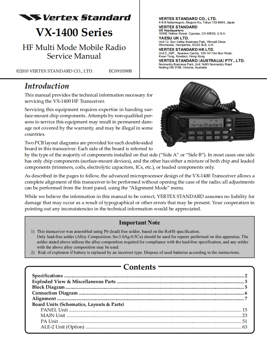 VX-1400维修电器原理图手册找手册网32天前发布关注私信5MB72页042VX-1400维修电器原理图手册此内容为付费资源,请付费后查看¥19¥21黄金会员免费钻石会员免费登录购买付费资源 第1页 / 共72页 第2页 / 共72页 第3页 / 共72页 第4页 / 共72页 第5页 / 共72页 试读已结束,还剩67页,您可下载完整版后进行离线阅读 THE END威泰克斯 文本预览 Vertex StandardHF Multi Mode Mobile RadioVX-1400 SeriesService Manual5th July 2010Revision 1 查看更多 收起部分 喜欢就支持一下吧收藏