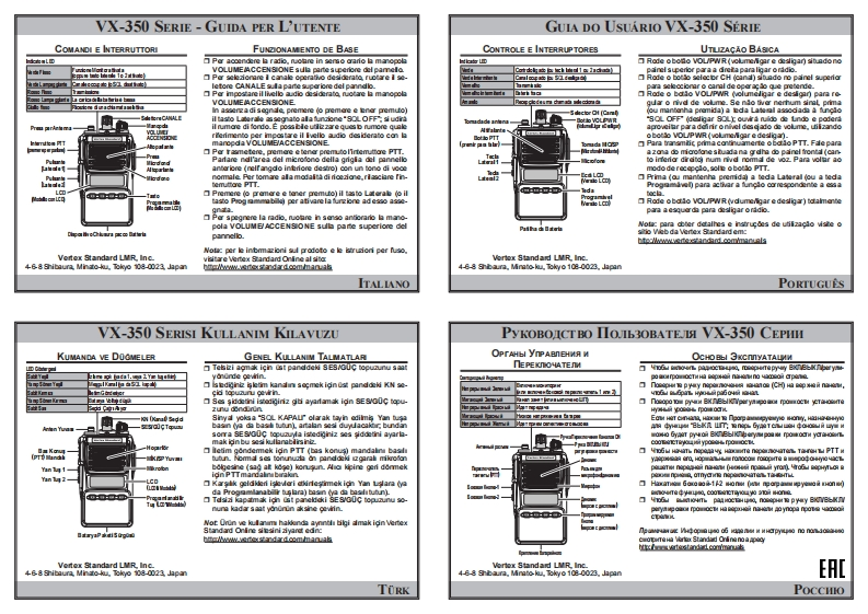 VX-350 SERIES USER GUIDEGUIDE DE I'UTILISATEUR VX-350 SERIECONTROL SITCHESBASIC OPERATIONCOMMANDES ET CONNEXONSUTUSATION DE BASE百Tum he bp pand's VOL/PNR kndb doc名e to bum an the石9 r la toe supdrieure,toumez finemruptour Masche的urgotero Er er2 he hadaradio.过tna1dw色a过ahl1caid】Volume dans le sens horaire pour alumer votre radio.is gCmetChmdo口Tum the top panef's CH selector kn生bo小oose the desired耐xtdSur la tace supdrieure.toumez lesdectour de canau (CHettthevdume levelClov Ydono与aPeao雀t白甲leWolumeOl(Chanal Sdacfor刻cteur de CamalEn I'absmnoe de signal appuyez sur (ou mairtenez)le bouwil nowbe heard and you may use this toset the VOL/PWR密t性aton Laxral programme sur la foncion 480L Desaciveknob trthe desired aidioleveLVous entendez le brut de tond et vous povez Iutliserandhddin the PTT switch.瑞出Speak nb the miocphone areaof he frontpanel grille dowerleea auolebounC四hdackMCCHpPour dmetre mairtenez I'Aernat.Parlez d'une voix nor四Ea写四da口Pea《or press and hold in)the[sDE]ey(aPe9raminderieur drot dua pameaua avant).Pour revenir en mode dethatkey.Appuy ez sur (ou mantenez)le bouton Latl (oula touche口Bur la taoe superieure toumez a tond finternpteur M山eheWStandard Onine atAmdt -Vollume dans le sens anti-horaire pour deindre votreRomaguec pour cbtonir des intmations sur oe produt et desVertex Standard LVR.Ine.Alothor todomarls ao he propoty of their respodive ouners.4-68Shibaura Minto-u.Tokyo 108-0023 Japan4-6-8 Shbaura,Mnato-ku,Tokyo 108-0023,JapanENGLISHFRANCAISGUiA DE USUARIO DE VX-350 SERIEVX-350 SERIE BENUTZERHANDBUCHCONTROLES Y CONECTORESFUNCIONAMIENTO BA超ICOBEDIENELEMENTE UND TASTEFUNKBETRIEB GRUNDLEGENDEGire d mando de VOLUMENENCENDDO-APAGADO shuado en石Zum Enschaten des Furkgerats dehan Sie den日N/AUS7att坐e上ch恤d1ehd边el pand superior en d senido de lsagsdd ndo para enoondera室r士t5wa111Lat购efc心an am Geratim Uhraeigersinnnc中红01a立■elTa8心e0r.山Th■■Gire el mando de SELECCION0 E CANAL siuad边endpanela纱口e293gam6trrma8e888888aaSelen Sie die gewensdhte Laustake tor de Tonausgabeoplnadduchens prochen生s Drehen座s日N/AUS/Lautstirierog5et德nd德5a境3nCoadon deArtam-Liegt kein Signal vor.d正en Sie ku2色aw.langi die 8●立正0人0ruido de fond a que podra utizar para estableoer d vdlumen desea-do medane el mndo de VOLUMENEN CENDIDO-APA GA DO年短(PTT)konnen dies zu Enstelen des EN/AUS/Lautst riereglrM包o过d正Microbnozona del morofono siuada on la reala del pand tontal (esquina inferior derech a)con un volumen de voz nom:l.Para valver al moda口五m3 enden drcken Sie die nd量a星und haltan siegedrot Sprechen Sie mit nomaler Latstarke in den Mk-口Auke0 nanenga pukadi h ed由LATERAL0laP0gRAAEmpang geben Sie de Sendetaste wieder fd.Gire'd mando de VOLUMENENCENDDO-APAGADO shuado enDruden Sie de Seisiche Taste baw die Paogameierbareel pand superior en d senido contrario a ls agas del reaj paraTaste)kurz baw.lng)um die dieser Taste augeordnete10nauk厅4e0Lapagar d ransoopocger bi zum AnscHag engegen den Uhrzeigersinn.umdas Funkger ausas小daLhee座s电0mmm03Hh wois:Produktdetal und Gebrauchs ankiLng sind bei Ver-Vertex