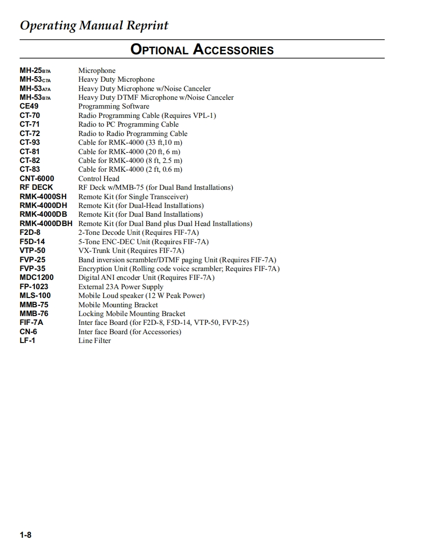 Vertex StandardVERTEX STANDARD CO.,LTD.4-8-8 Nakameguro,Meguro-Ku,Tokyo 153-8644,JapanVERTEX STANDARDUS HeadquartersUHF FM Transceiver10900 Walker Street,Cypress,CA 90630.U.S.A.YAESU EUROPE B.V.VX-5500UP.O.Box 75525,1118 ZN Schiphol,The NetherlandsYAESU UK LTD.Service ManualUnit 12,Sun Valley Business Park,Winnall CloseWinchester,Hampshire,SO23 OLB,U.K.VERTEX STANDARD HK LTD.@2003 VERTEX STANDARD CO.,LTD.EC034U90AUnit 5,20/F.,Seaview Centre,139-141 Hoi Bun Road,Kwun Tong,Kowloon,Hong KongERIntroductionThis manual provides technical information necessary for servicing the VX-5500U UHF FM Transceiver.Servicing this equipment requires expertise in handling surface-mount chip components.Attempts by non-qualifiedpersons to service this equipment may result in permanent damage not covered by the warranty,and may be illegal insome countries.Two PCB layout diagrams are provided for each double-sided circuit board in the Transceiver.Each side of is referredto by the type of the majority of components installed on that side("leaded"or"chip-only").In most cases one side hasonly chip components,and the other has either a mixture of both chip and leaded components(trimmers,coils,electrolyticcapacitors,ICs,etc.),or leaded components only.While we believe the technical information in this manual to be correct,VERTEX STANDARD assumes no liabilityfor damage that may occur as a result of typographical or other errors that may be present.Your cooperation in pointingout any inconsistencies in the technical information would be appreciated.ContentsOperating Manual Reprint..1-1Board Unit (Schematics,Layouts Parts)☑0ning.2-1MAIN Unit6A-1Specifications .........DISPLAYUnit6B-1.2-2KEY Unit6C-1Exploded View Miscellaneous Parts...3-1VR Unit.....6D-1Block Diagram3-2MIC CONN Unit........6D-2Interconnection Diagram.3-4Optional Board Unit (Schematics,Layouts Parts)E2D-82-Tone Decode Unit...7A-1Circuit Description4-1VTP-50 VX-Trunk Unit..7B-1Alignment….5-1FVP-25 Encryption/DTMF Pager Unit ..........C-1E5D-145-Tone Unit.7D-1FIE-7A Connection Unit..E-1