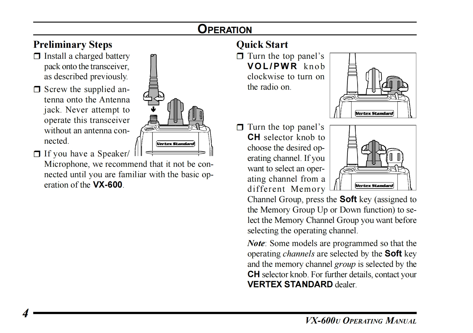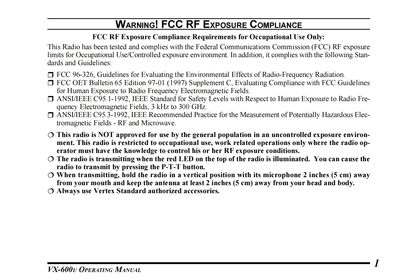 Vertex StandardVX-600uVertex StandandOperating ManualVERTEX STANDARD CO.,LTD.4-8-8 Nakameguro,Meguro-Ku,Tokyo 153-8644,JapanVERTEX STANDARDUS Headquarters17210 Edwards Rd.,Cerritos,CA 90703,U.S.A.International Division8350 N.W.52nd Terrace,Suite 201,Miami,FL 33166,U.S.A.AYAESU EUROPE B.V.P.O.Box 75525,1118 ZN Schiphol,The NetherlandsYAESU UK LTD.Unit 12,Sun Valley Business Park,Winnall CloseWinchester,Hampshire,SO23 OLB,U.K.YAESU GERMANY GmbHAm Kronberger Hang 2,D-65824 Schwalbach,GermanyVERTEX STANDARD HK LTD.Unit 5,20/F.,Seaview Centre,139-141 Hoi Bun Road,Kwun Tong,Kowloon,Hong Kong