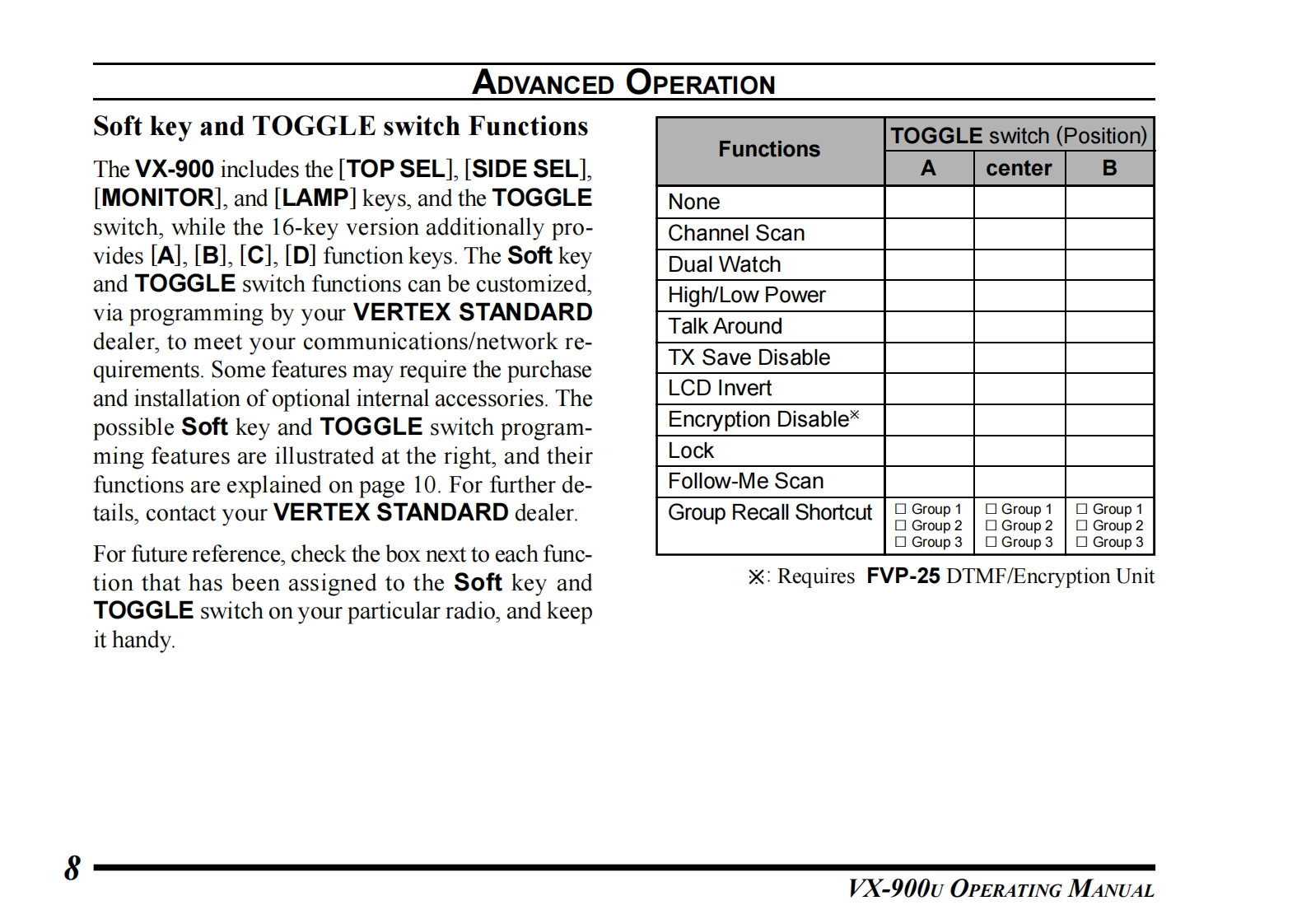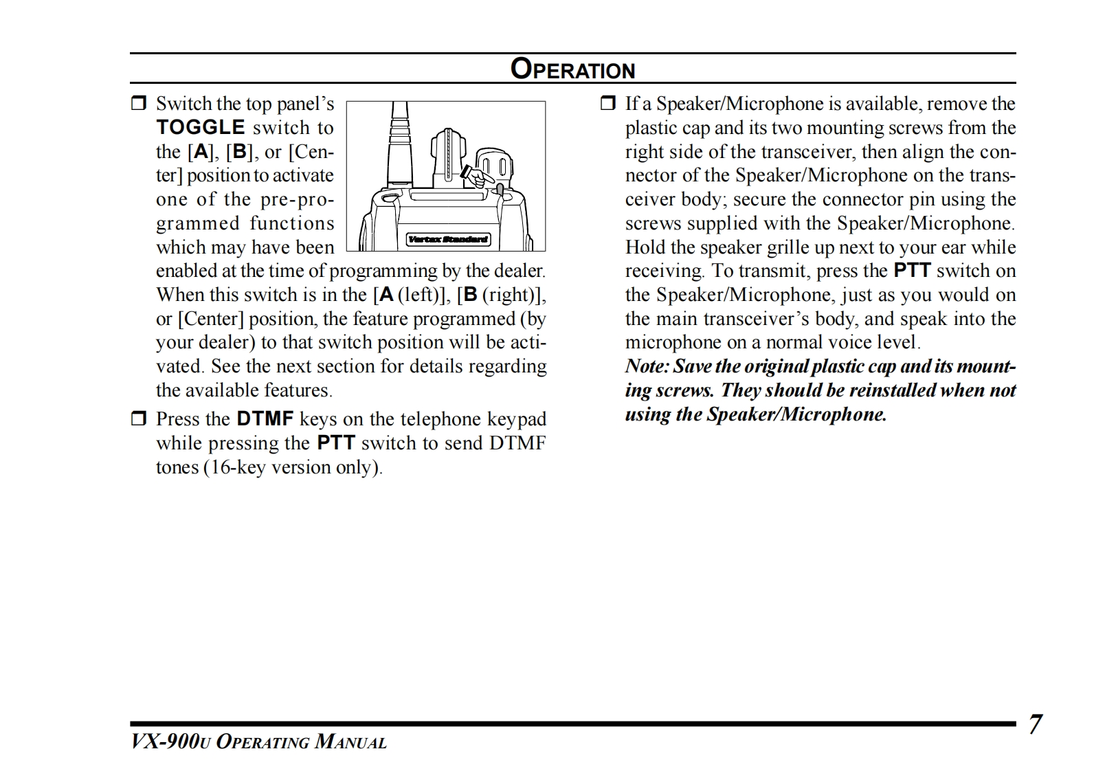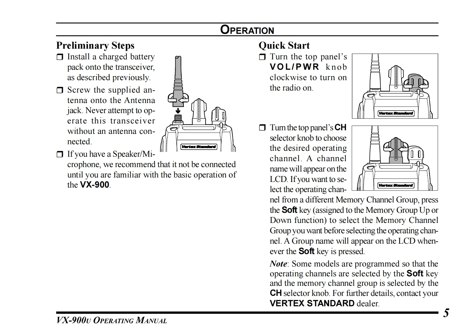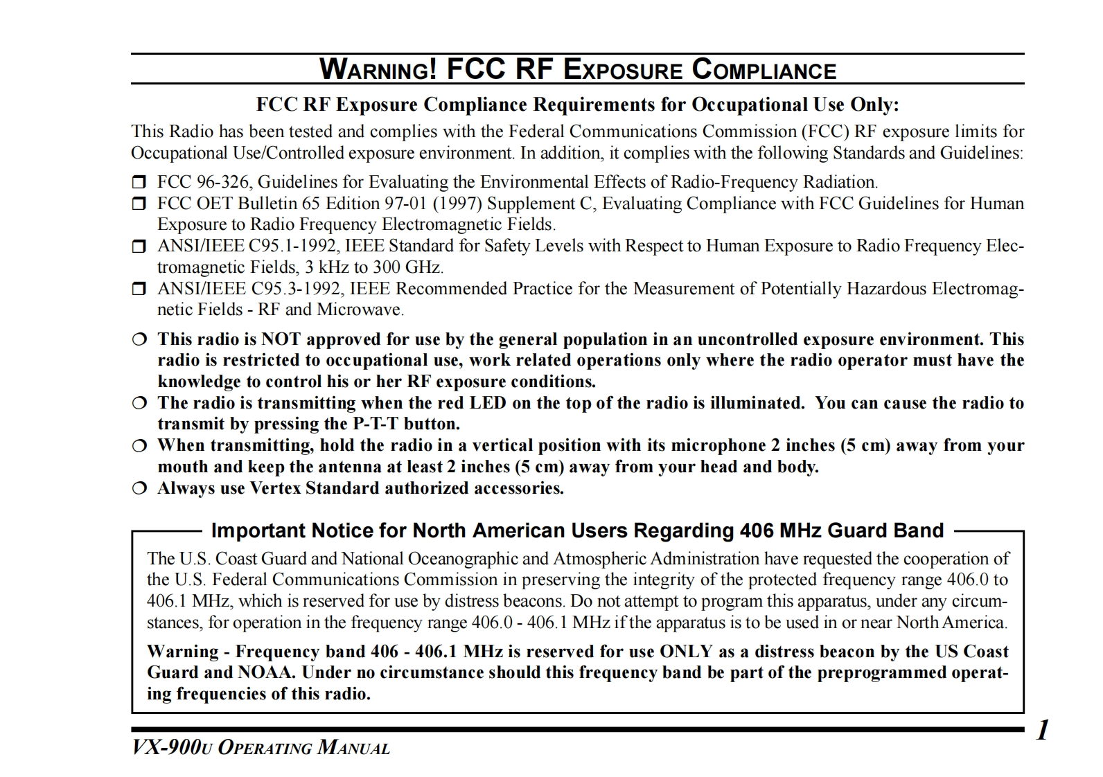 Vertex StandardVX-900Operating ManualVertex StandanVERTEX STANDARD CO.,LTD.4-8-8 Nakameguro,Meguro-Ku,Tokyo 153-8644,JapanVERTEX STANDARDUS Headquarters17210 Edwards Rd.,Cerritos,CA 90703,U.S.A.International Division8350 N.W.52nd Terrace,Suite 201,Miami,FL 33166,U.S.A.YAESU EUROPE B.V.P.O.Box 75525,1118 ZN Schiphol,The NetherlandsYAESU UK LTDUnit 12,Sun Valley Business Park,Winnall CloseWinchester,Hampshire,SO23 0LB,U.K.9YAESU GERMANY GmbHAm Kronberger Hang 2,D-65824 Schwalbach,Germany*0VERTEX STANDARD HK LTD.Unit 5,20/F.,Seaview Centre,139-141 Hoi Bun Road,Kwun Tong,Kowloon,Hong Kong