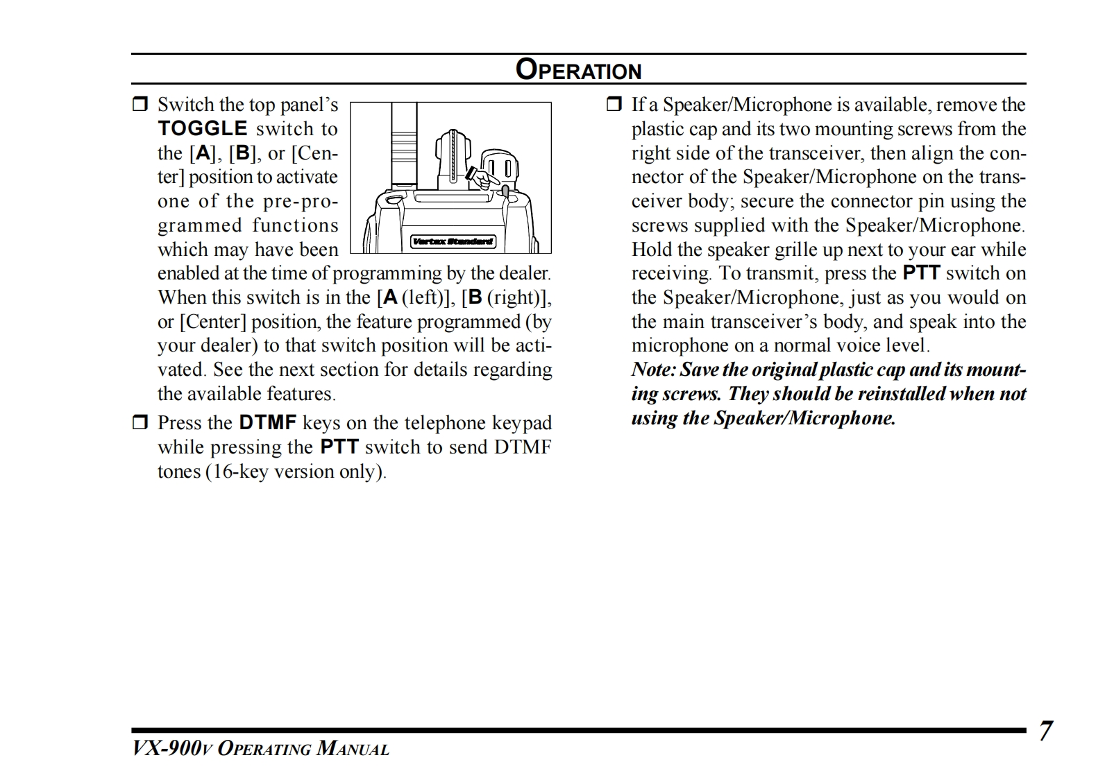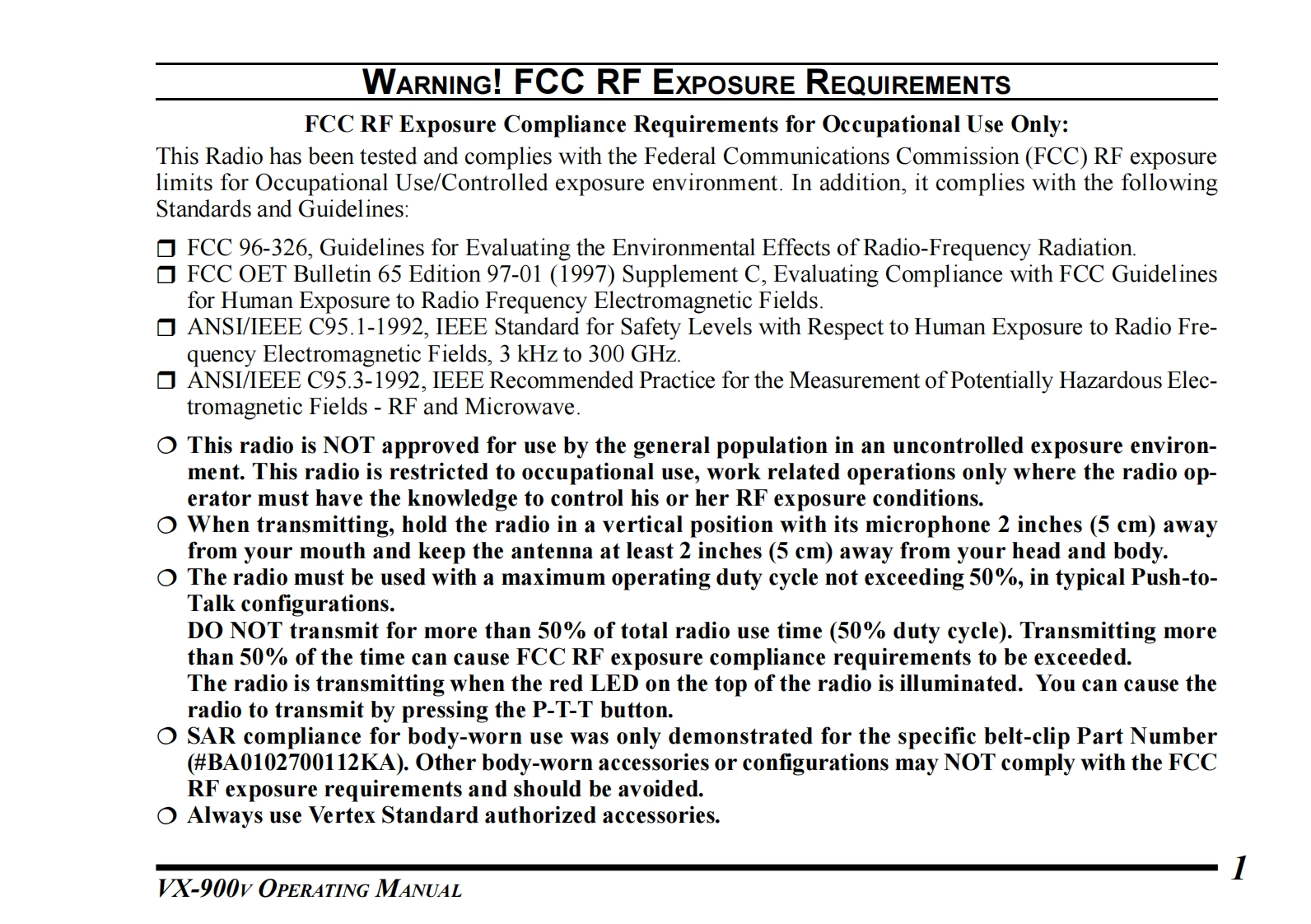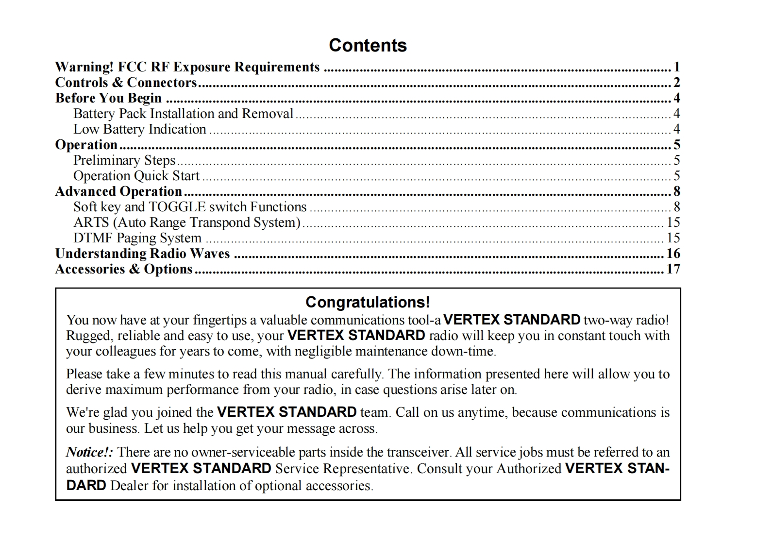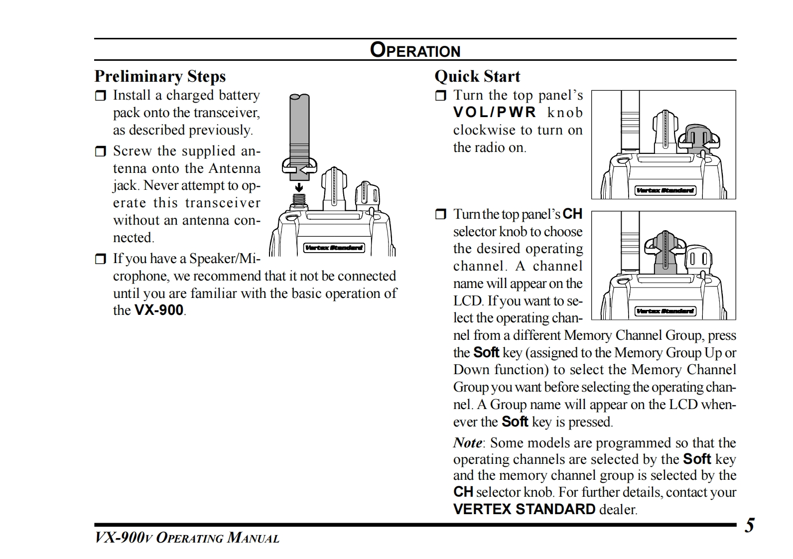 Vertex StandardVX-900vOperating ManualVertex StandardVERTEX STANDARD CO.,LTD.4-8-8 Nakameguro,Meguro-Ku,Tokyo 153-8644,JapanVERTEX STANDARDUS Headquarters17210 Edwards Rd.,Cerritos,CA 90703,U.S.A.International Division8350 N.W.52nd Terrace,Suite 201,Miami,FL 33166,U.S.A.YAESU EUROPE B.V.P.O.Box 75525,1118 ZN Schiphol,The NetherlandsYAESU UK LTD.Unit 12,Sun Valley Business Park,Winnall Close6Winchester,Hampshire,SO23 OLB,U.K.YAESU GERMANY GmbHAm Kronberger Hang 2,D-65824 Schwalbach,GermanyVERTEX STANDARD HK LTD.Unit 5,20/F.,Seaview Centre,139-141 Hoi Bun Road,Kwun Tong,Kowloon,Hong Kong