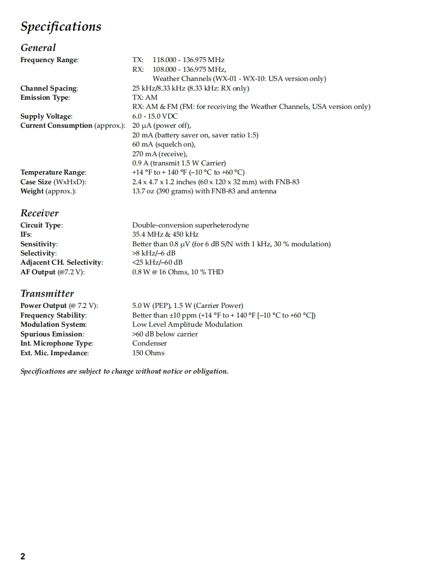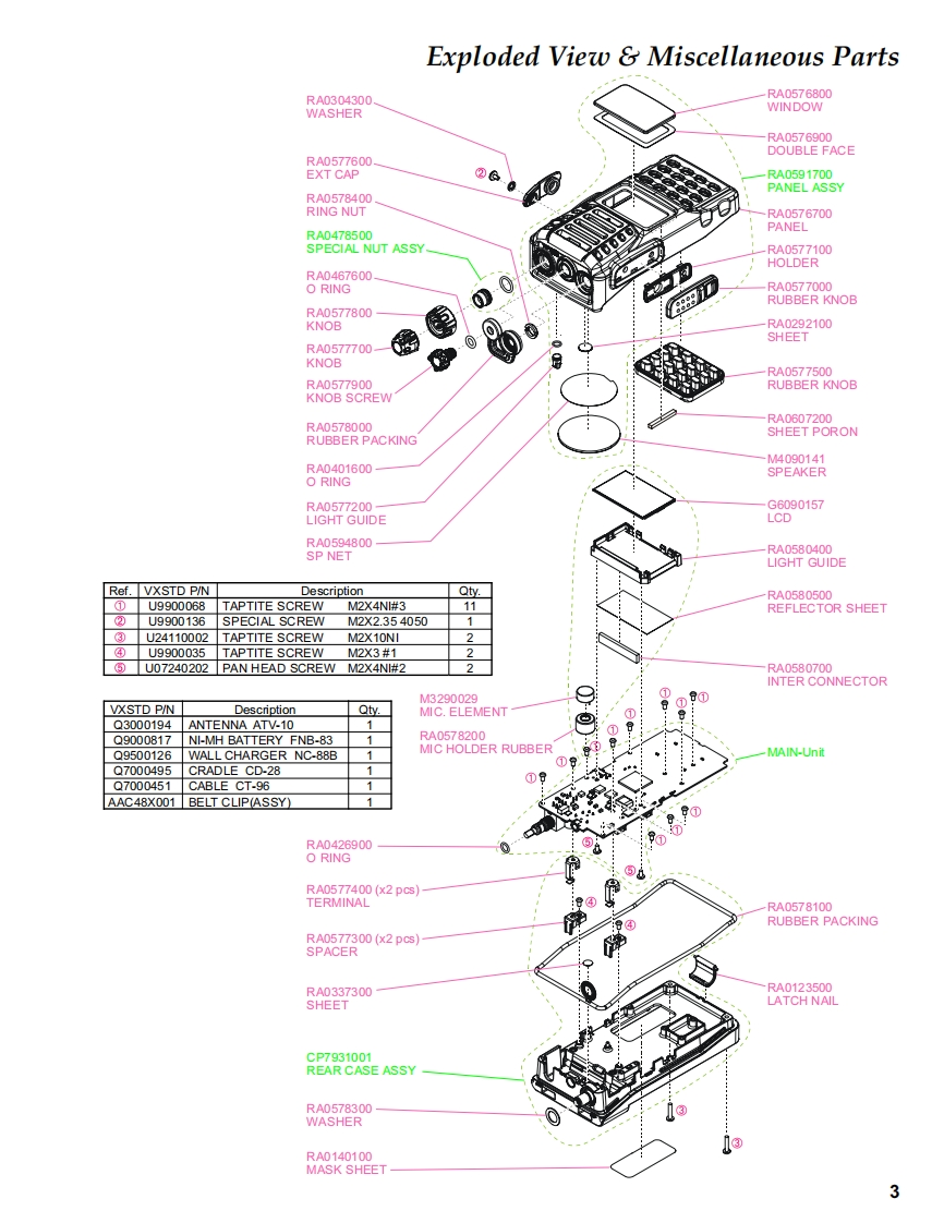 Vertex StandardVERTEX STANDARD CO.,LTD.4-8-8 Nakameguro,Meguro-Ku,Tokyo 153-8644,JapanVERTEX STANDARDAir Band TransceiverUS Headquarters10900 Walker Street,Cypress.CA 90630.U.S.A.YAESU EUROPE B.V.VXA-300P.O.Box 75525,1118 ZN Schiphol,The NetherlandsYAESU UK LTD.Unit 12,Sun Valley Business Park,Winnall CloseService ManualWinchester,Hampshire,SO23 OLB,U.KVERTEX STANDARD HK LTD.Unit 5,20/F.,Seaview Centre,139-141 Hoi Bun Road,2004 VERTEX STANDARD CO.,LTD.(EC057N90A)Kwun Tong,Kowloon,Hong KongIntroductionThis manual provides technical information necessary forservicing the VXA-300 Air Band Transceiver.Servicing thisequipment requires expertise in handling sur-face-mount chip components.Attempts by non-qualifiedpersons to service this equipment may result in permanentdamage not covered by the warranty,and may be illegal insome countries.Two PCB layout diagrams are provided for each double-sided circuit board in the transceiver.Each side of thr boardis referred to by the type of the majority of componentsinstalled on that side("leaded"or"chip-only").In mostcases one side has only chip components,and the other haseither a mixture of both chip and leaded components(trim-mers,coils,electrolytic capacitors,ICs,etc.),or leaded com-ponents only.While we believe the technical information in this manualto be correct,Vertex Standard assumes no liability for dam-age that may occur as a result of typographical or othererrors that may be present.Your cooperation in pointingout any inconsistencies in the technical information wouldbe appreciated.ContentsSpecifications.........2Exploded View Miscellaneous Parts.3Block Diagram...5Circuit Description...........7Alignment......11MAIN Unit Circuit Diagram..15MAIN Unit Parts Layout......17MAIN Unit Parts List .....19