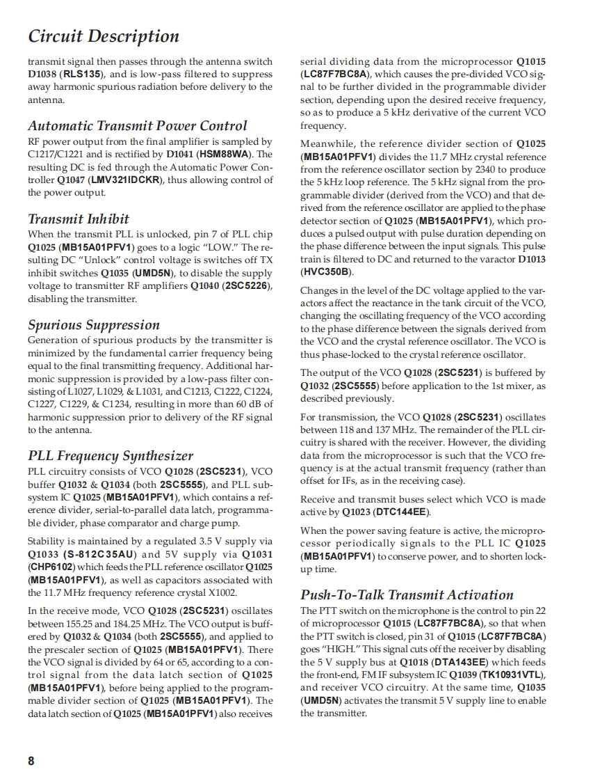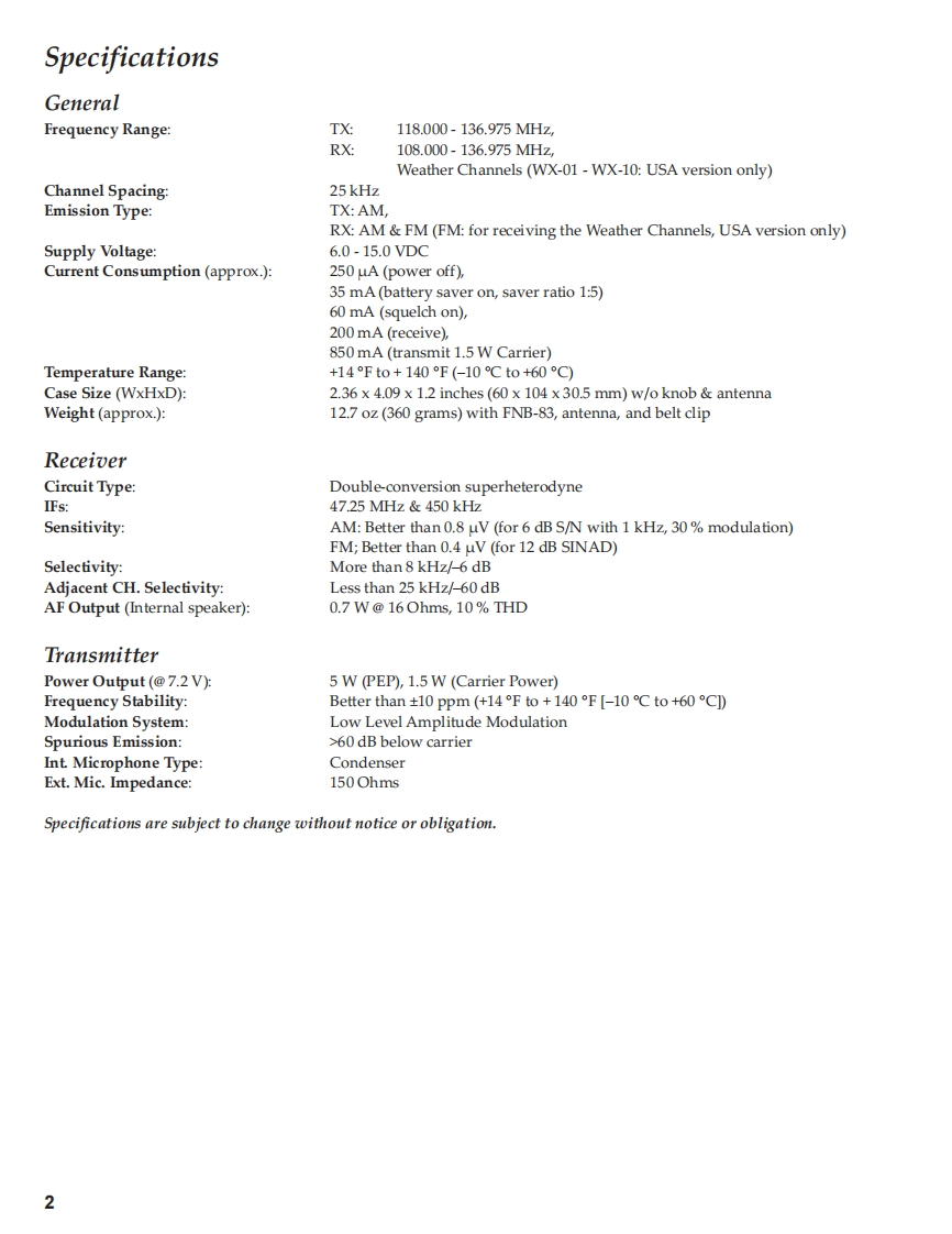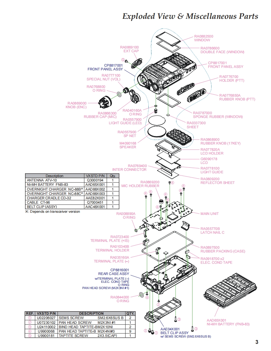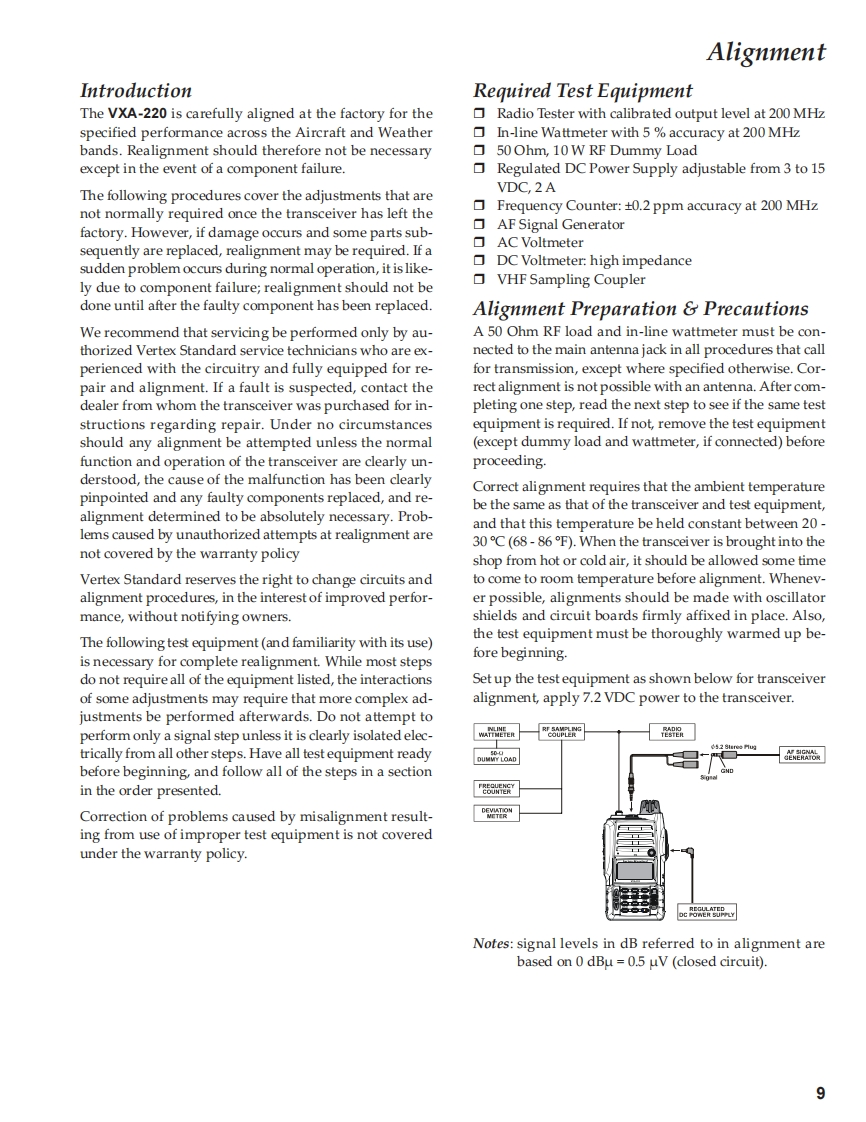 Vertex StandardVERTEX STANDARD CO.,LTD.4-8-8 Nakameguro,Meguro-Ku,Tokyo 153-8644,JapanVERTEX STANDARDAir Band Transceiveret.Cypres.U.YAESU EUROPE B.V.P.O.Box 75525,1118 ZN Schiphol,The NetherlandsVXA-220YAESU UK LTD.WmhNamgsreCoseVERTEX STANDARD HK LTD.Service ManualUnit 5,20/F.,Seaview Centre,139-141 Hoi Bun Road,Kwun Tong,Kowloon,Hong KongVERTEX STANDARD(AUSTRALIA)PTY.,LTD.2006 VERTEX STANDARD CO.,LTD.(EC072N90A)Normanby Business Park,Unit 14/45 Normanby RoadNotting Hill 3168,Victoria,AustraliaIntroductionThis manual provides technical information necessary for servicing the VXA-220 Air Band Transceiver.Servicing this equipment requires expertise in handling surface-mount chipcomponents.Attempts by non-qualified persons to service this equipment mayresult in permanent damage not covered by the warranty,and may be illegalin some countries.Two PCB layout diagrams are provided for each double-sided circuit board inthe transceiver.Each side of thr board is referred to by the type of the majority28of components installed on that side("leaded"or"chip-only").In most casesANone side has only chip components,and the other has either a mixture of bothVOxVXA-220chip and leaded components(trimmers,coils,electrolytic capacitors,ICs,etc.),or leaded components only.While we believe the technical information in this manual to be correct,Vertex9Standard assumes no liability for damage that may occur as a result of typo-graphical or other errors that may be present.Your cooperation in pointingout any inconsistencies in the technical information would be appreciated.Important NoteThis transceiver was assembled using Pb(lead)free solder,based on the RoHS specification.Only lead-free solder(Alloy Composition:Sn-3.0Ag-0.5Cu)should be used for repairs performed on thisapparatus.The solder stated above utilizes the alloy composition required for compliance with the lead-freespecification,and any solder with the above alloy composition may be used.ContentsSpecifications........2Exploded View Miscellaneous Parts.3Block Diagram...5Circuit Description.........7Alignment..MAIN Unit Circuit Diagram.13MAIN Unit Parts Layout ......15MAIN Unit Parts List.........17