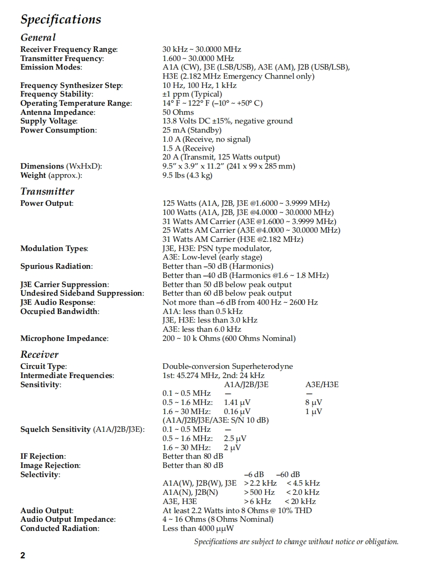 Vertex StandardVERTEX STANDARD CO.,LTD.4-8-8 Nakameguro,Meguro-Ku,Tokyo 153-8644,JapanVERTEX STANDARDVX-1700 SeriestCypresC.AYAESU EUROPE B.V.HF Multi Mode Mobile RadioP.O.Box 75525,1118 ZN Schiphol,The NetherlandsYAESU UK LTD.Service ManualUnit 12,Sun Valley Business Park,Winnall CloseWinchester,Hampshire,SO23 0LB,U.K.For EXP VersionVERTEX STANDARD HK LTD.Unit 5,20/F.,Seaview Centre,139-141 Hoi Bun Road,@2005 VERTEX STANDARD CO.,LTD.EC051H90AKwun Tong,Kowloon,Hong KongIntroductionThis manual provides the technical information necessary for servicing the VX-1700 HF Transceiver.Servicing this equipment requires expertise in handing surface-mount chip components.Attempts by non-qualified persons to service this equipment may result in permanent damage not covered by the warranty,and may be illegal in some countries.Two PCB layout diagrams are provided for each double-sided board in this transceiver.Each side of the boardis referred to by the type of the majority of components installed on that side("Side A"or"Side B").In mostcases one side has only chip components(surface-mount devices),and the other has either a mixture of bothchip and leaded components(trimmers,coils,electrolytic capacitors,ICs,etc.),or leaded components only.As described in the pages to follow,the advanced microprocessor design of the VX-1700 Transceiver allows acomplete alignment of this transceiver to be performed without opening the case of the radio;all adjustmentscan be performed from the front panel,using the "Alignment Mode"menu.While we believe the information in this manual to be correct,VERTEX STANDARD assumes no liability fordamage that may occur as a result of typographical or other errors that may be present.Your cooperation inpointing out any inconsistencies in the technical information would be appreciated.ContentsSpecifications......2Exploded View Miscellaneous Parts................3Bl0 ck Diagram…5Circuit Description....7Connector Pinout Diagrams/Slide Switch Setting.....10Alignment.11ALE-1 Automatic Link Establishment Unit Installation19CE77 PC Programming Software.........21Board Units (Schematics,Layouts Parts)MAIN Unit..49PA Unit…73PANEL Unit83GPS-INTERFACE Unit.89MIC Unit........93ENC Unit.......94ALE Unit(Option).95