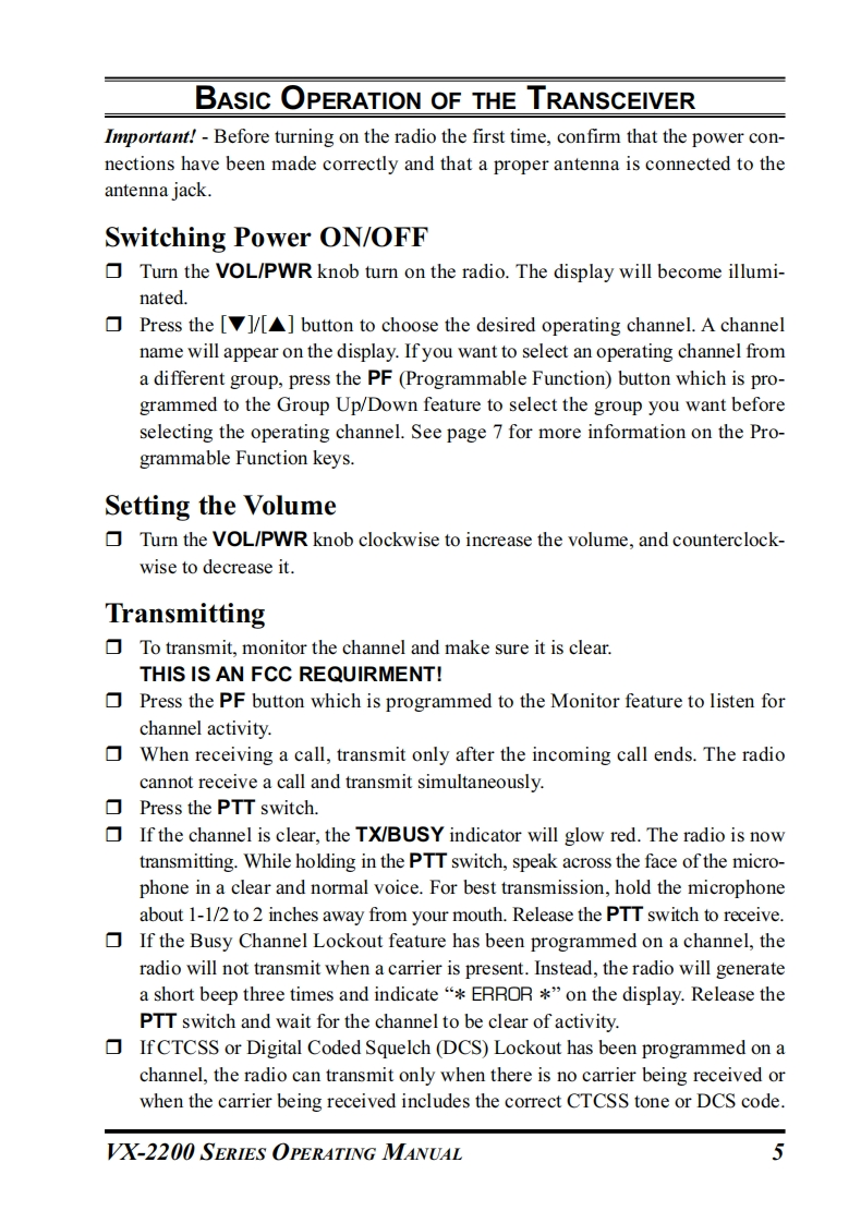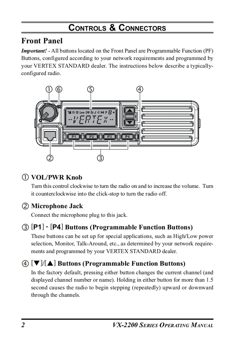 Vertex StandardVX-2200SERIESOPERATING MANUALLow DIT2d州PBP1■P3VERTEX STANDARD CO.,LTD.4-8-8 Nakameguro,Meguro-Ku,Tokyo 153-8644,JapanVERTEX STANDARDUS Headquarters10900 Walker Street,Cypress,CA 90630,U.S.A.YAESU EUROPE B.V.P.O.Box 75525,1118 ZN Schiphol,The NetherlandsYAESU UK LTD.Unit 12,Sun Valley Business Park,Winnall CloseWinchester,Hampshire,S023 OLB,U.K.VERTEX STANDARD HK LTD.Unit 5,20/F.,Seaview Centre,139-141 Hoi Bun Road,Kwun Tong,Kowloon,Hong Kong