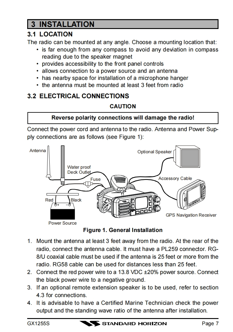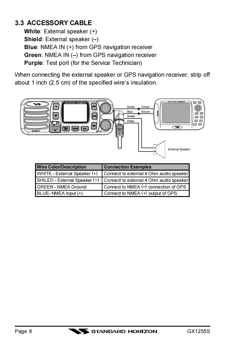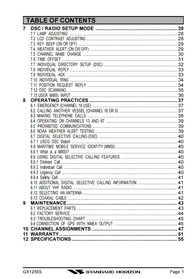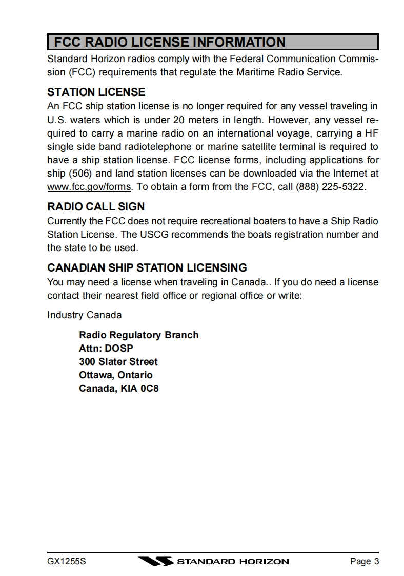 STANDARD HORIZONQUEST GX1255S25 Watt VHF/FMMarine TransceiverOwner's ManualRTCM SC-101 DSC Distress call with your exact posi-tion when connected to a GPSCompact and Simple Operation3 year waterproof warrantyBacklit Keypad and LCD displays latitude/longitudewhen connected to a GPSChannel Name,GPS Time or GPS Position Repeatingshown on the display●NOAA Weather AlertOne-button access to Channel 16 and 9Access to all US,Canadian and International ChannelsVersatile User-programmable Scan,Priority Scan andDual WatchMicrophone with Channel Slection.006國园品