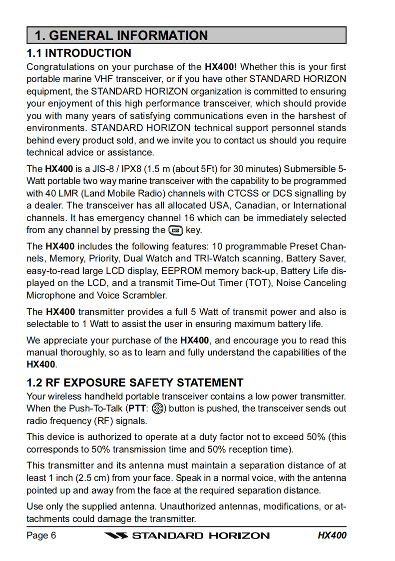 HX-400操作说明书手册找手册网20小时前发布关注私信1.40MB48页050HX-400操作说明书手册此内容为付费资源,请付费后查看¥19¥21黄金会员免费钻石会员免费立即购买您当前未登录!建议登陆后购买,可保存购买订单付费资源 第1页 / 共48页 第2页 / 共48页 第3页 / 共48页 第4页 / 共48页 第5页 / 共48页 第6页 / 共48页 第7页 / 共48页 第8页 / 共48页 第9页 / 共48页 第10页 / 共48页 试读已结束,还剩38页,您可下载完整版后进行离线阅读 THE ENDStandard-horizon 文本预览 STANDARD HORIZONHX400VHF FM Marine TransceiverOwner's Manual 查看更多 收起部分 喜欢就支持一下吧收藏