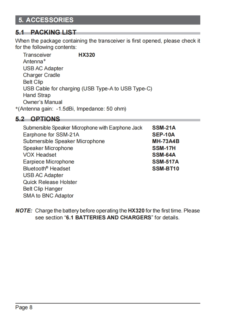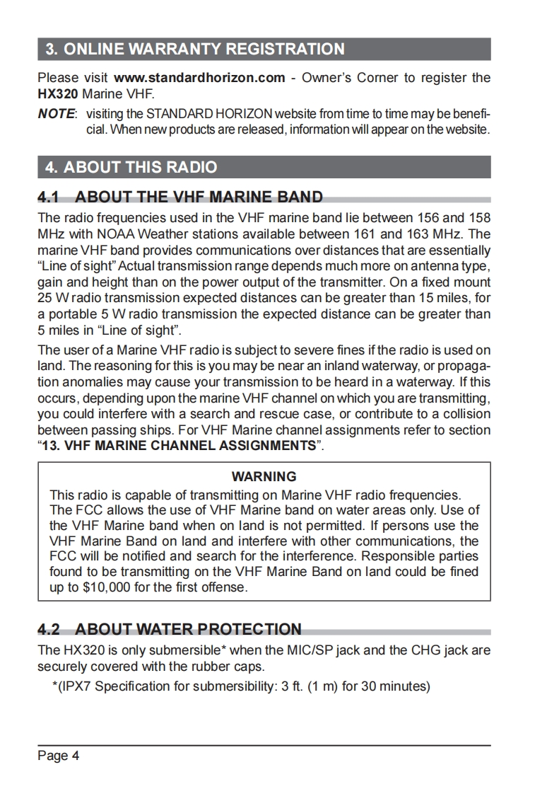 HX320_E_操作说明书手册_ENG_EM068N201找手册网20小时前发布关注私信7.28MB60页050HX320_E_操作说明书手册_ENG_EM068N201此内容为付费资源,请付费后查看¥19¥21黄金会员免费钻石会员免费立即购买您当前未登录!建议登陆后购买,可保存购买订单付费资源 第1页 / 共60页 第2页 / 共60页 第3页 / 共60页 第4页 / 共60页 第5页 / 共60页 第6页 / 共60页 第7页 / 共60页 第8页 / 共60页 第9页 / 共60页 第10页 / 共60页 试读已结束,还剩50页,您可下载完整版后进行离线阅读 THE ENDStandard-horizon 文本预览 STANDARD HORIZONNothing takes to water like Standard HorizonHX320HX320EFloating VHF FM Marine TransceiverOwner's ManualSTANDARD HORIZONBUSY HI16HX320MENU/SETCLR/OrVOLVOL161SFLOATINGBluetooth 查看更多 收起部分 喜欢就支持一下吧收藏