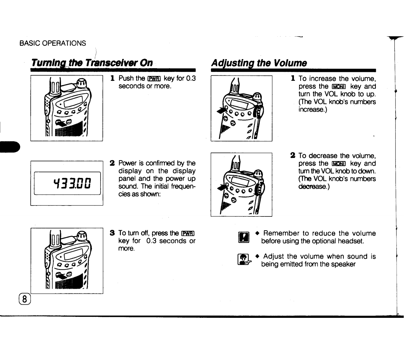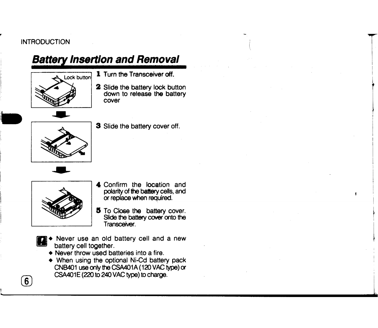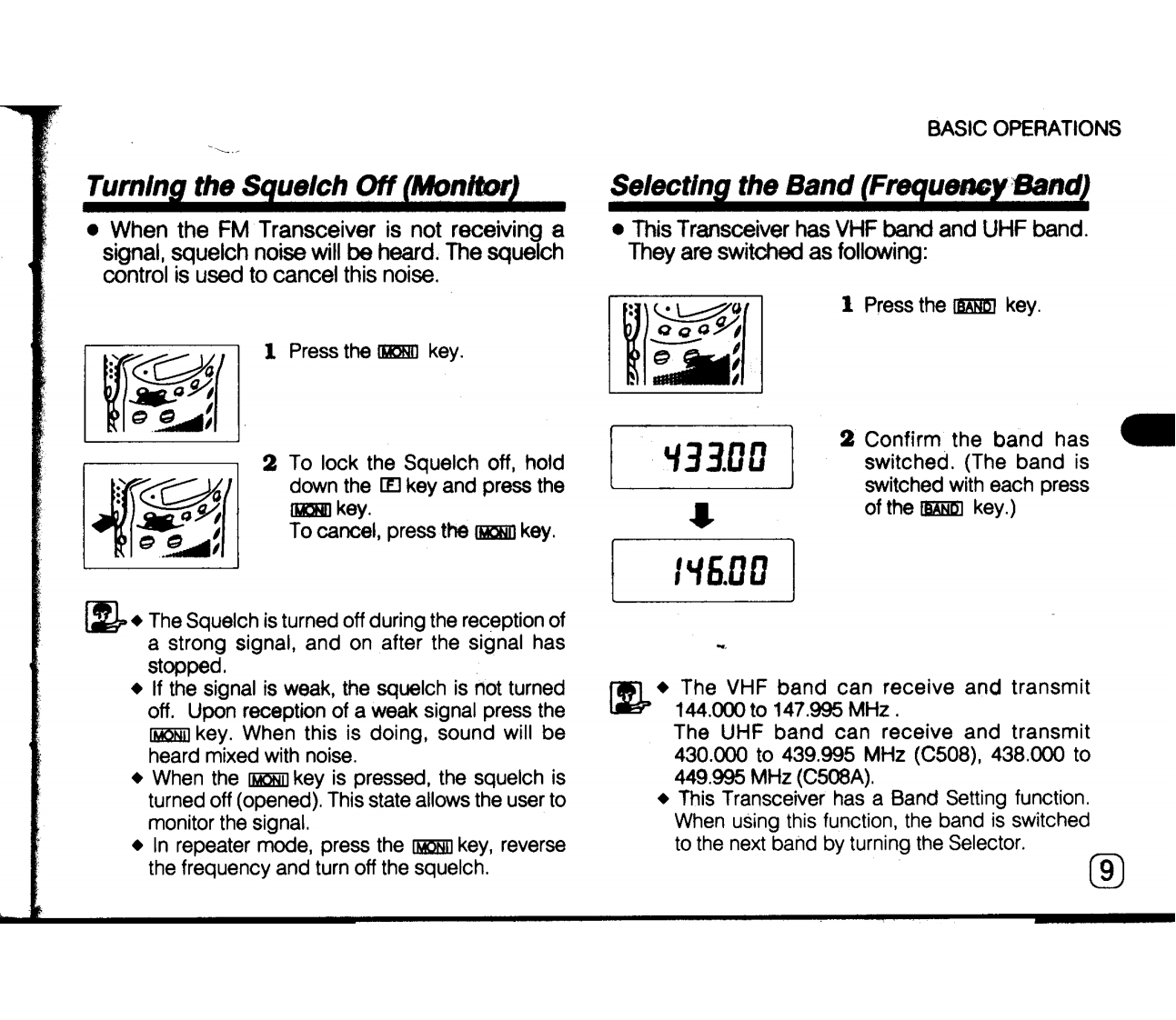 Table of ContentsINTRODUCTION3Precautions....................4Using the Selector in Frequency Lock Mode ............21Attaching the Antenna.......5Using the Selector beyond Band LimitsBattery Insertion and Removal6(Band Setting)..22Changing the Set Mode Function (My Key)..............22BASIC OPERATIONS7Quick Recall of Often Used Set Menus23Turning the Transceiver On .................8Lighting the Display Lamp ........23Adjusting the Volume……8Turning the Squelch Off (Monitor).............................9MEMORY FUNCTIONS25Selecting the Band (Frequency Band)........................9The Memory Function .............................…26VFO State….10Storing the Memory...........................26Receiving.…10Recalling the Memory.................2Transmitting...............11Changing the Memory.….27Resetting the VFO VFO Reset ).....12Erasing the Memory .........Resetting All Settings (All Reset).............2812Storing Various Modes in a Memory.28Operation and Function of Parts .............13Setting the Split Memory ............29Tying the Hand-strap to Belt-clip…16Displaying the Memory Address.30Attaching the Belt-clip to the Transceiver .................16SCAN31ADVANCED OPERATION17Scan Function.…32Changing the Frequency Step .................18Changing the Scan Type......................................33Changing the Frequency in 1 MHz,100 kHzScan within 1 MHz (1 MHz Scan).............................33or 10 MHz Steps..............18Scan the Entire Band Width (All Scan)......................34Using the CALL Frequency ..........................19Scan a Specific Range (Program Scan)........34Changing the CALL Frequency (1)....................19Scan Frequencies in Memory (Memory Scan)...........36Changing the CALL Frequency (2)..........20Scan Specific Memory FrequenciesStoring Associated Data with the CALL Frequency ..20(Memory Scan Memory)...............................37Using the Frequency Lock ........................................21Scan a Block(Block Memory Scan).….38Scan the Tone Frequency(Tone Squelch Scan)......39