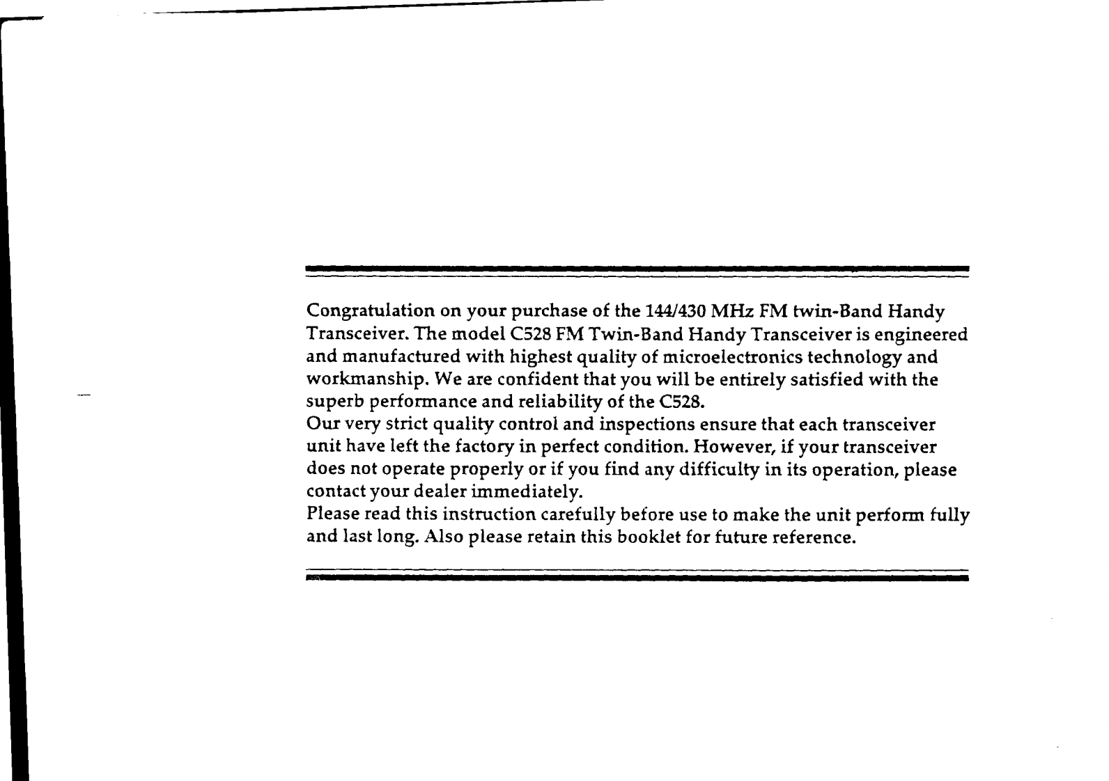 Standard_C520-(Manual操作说明书手册)找手册网17小时前发布关注私信2.60MB68页046Standard_C520-(Manual操作说明书手册)此内容为付费资源,请付费后查看¥19¥21黄金会员免费钻石会员免费立即购买您当前未登录!建议登陆后购买,可保存购买订单付费资源 第1页 / 共68页 第2页 / 共68页 第3页 / 共68页 第4页 / 共68页 第5页 / 共68页 第6页 / 共68页 第7页 / 共68页 第8页 / 共68页 第9页 / 共68页 第10页 / 共68页 试读已结束,还剩58页,您可下载完整版后进行离线阅读 THE ENDStandard-horizon 文本预览 STANDARD.144/430 MHz FM Twin-Band Handy TransceiverC520OWNER'S MANUAL物 查看更多 收起部分 喜欢就支持一下吧收藏
