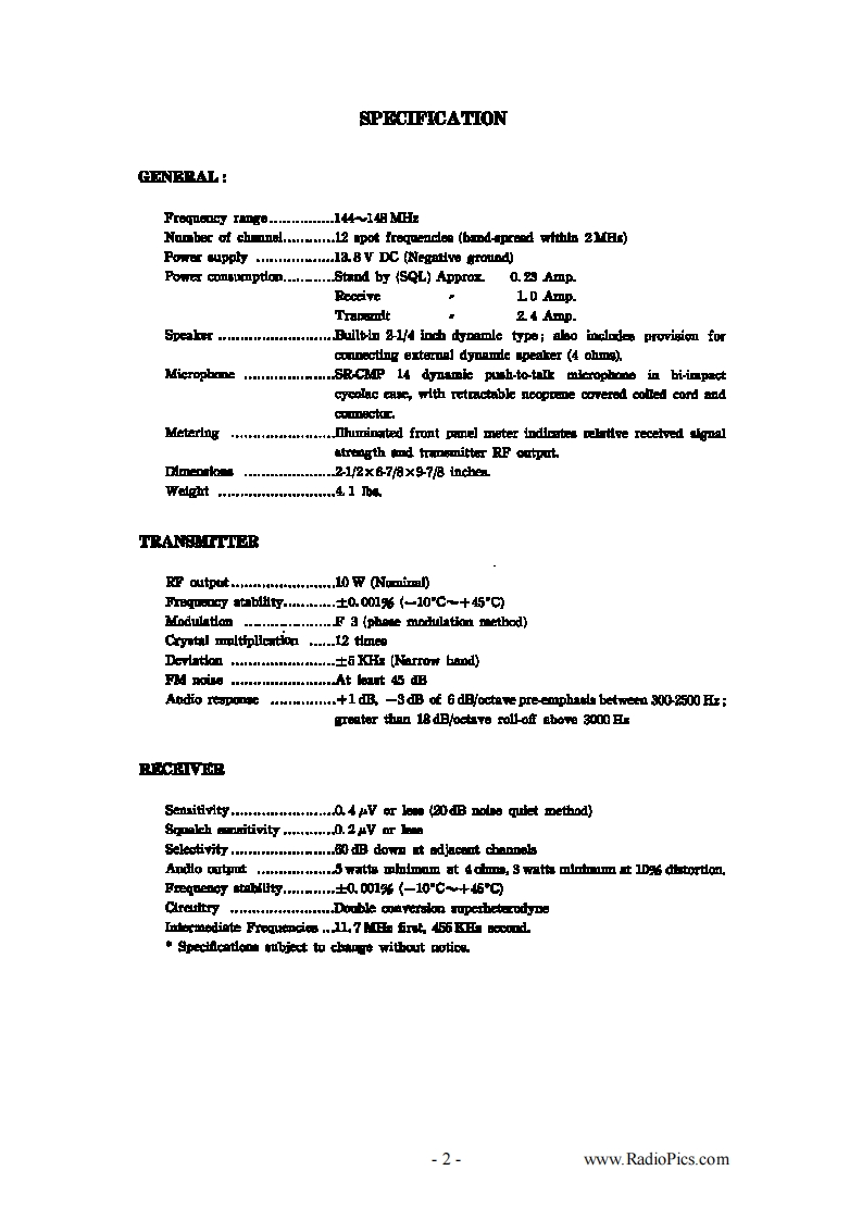 Standard_SR-C826M_Manual操作说明书手册找手册网17小时前发布关注私信0.89MB14页039Standard_SR-C826M_Manual操作说明书手册此内容为付费资源,请付费后查看¥19¥21黄金会员免费钻石会员免费立即购买您当前未登录!建议登陆后购买,可保存购买订单付费资源 第1页 / 共14页 第2页 / 共14页 第3页 / 共14页 第4页 / 共14页 第5页 / 共14页 第6页 / 共14页 第7页 / 共14页 第8页 / 共14页 第9页 / 共14页 第10页 / 共14页 试读已结束,还剩4页,您可下载完整版后进行离线阅读 THE ENDStandard-horizon 文本预览 OPERATING INSTRUCTIONSSTANDARDSR-C826M2mFM 10W 12CHSTANDARD RADIO CORP.3622 Kamitsuruma.Sagamihara-shi KanagawaPhone:0427-43-1111Cable TLX 2872-210 DRADNATS TOKYO-1www.RadioPics.com 查看更多 收起部分 喜欢就支持一下吧收藏
