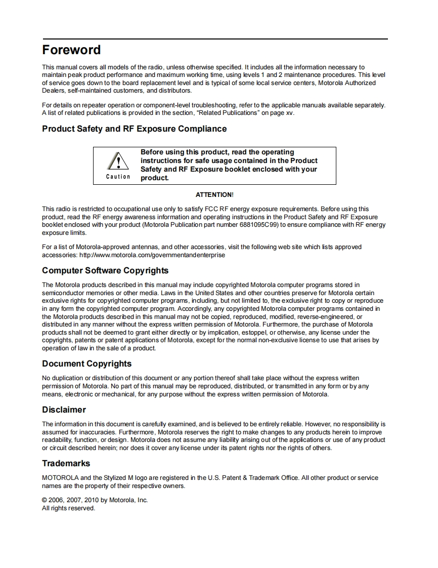 6881088C46_Motorola_HT_MTX_PRO_Detailed_Service_Manual维修维护手册找手册网32天前发布关注私信33.57MB637页0396881088C46_Motorola_HT_MTX_PRO_Detailed_Service_Manual维修维护手册此内容为付费资源,请付费后查看¥19¥21黄金会员免费钻石会员免费登录购买付费资源 第1页 / 共637页 第2页 / 共637页 第3页 / 共637页 第4页 / 共637页 第5页 / 共637页 第6页 / 共637页 第7页 / 共637页 第8页 / 共637页 第9页 / 共637页 第10页 / 共637页 试读已结束,还剩627页,您可下载完整版后进行离线阅读 THE END摩托罗拉 文本预览 HT SeriesTMOTOROLAMTX SeriesTPRO SeriesProfessional SeriesTwo-Way Portable RadiosDetailed Service ManualMOTOROLAMOTOROLAMOTOROLA四CD20 查看更多 收起部分 喜欢就支持一下吧收藏