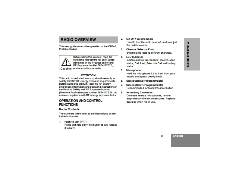 cp040_user_guide操作说明书手册找手册网32天前发布关注私信0.35MB18页031cp040_user_guide操作说明书手册此内容为付费资源,请付费后查看¥19¥21黄金会员免费钻石会员免费登录购买付费资源 第1页 / 共18页 第2页 / 共18页 第3页 / 共18页 第4页 / 共18页 第5页 / 共18页 第6页 / 共18页 第7页 / 共18页 第8页 / 共18页 第9页 / 共18页 第10页 / 共18页 试读已结束,还剩8页,您可下载完整版后进行离线阅读 THE END摩托罗拉 文本预览 MOTOROLAintelligence everywhereCommercial SeriesCP040 Portable RadioUser Guide6866549D01-0Issue:October 2003 查看更多 收起部分 喜欢就支持一下吧收藏