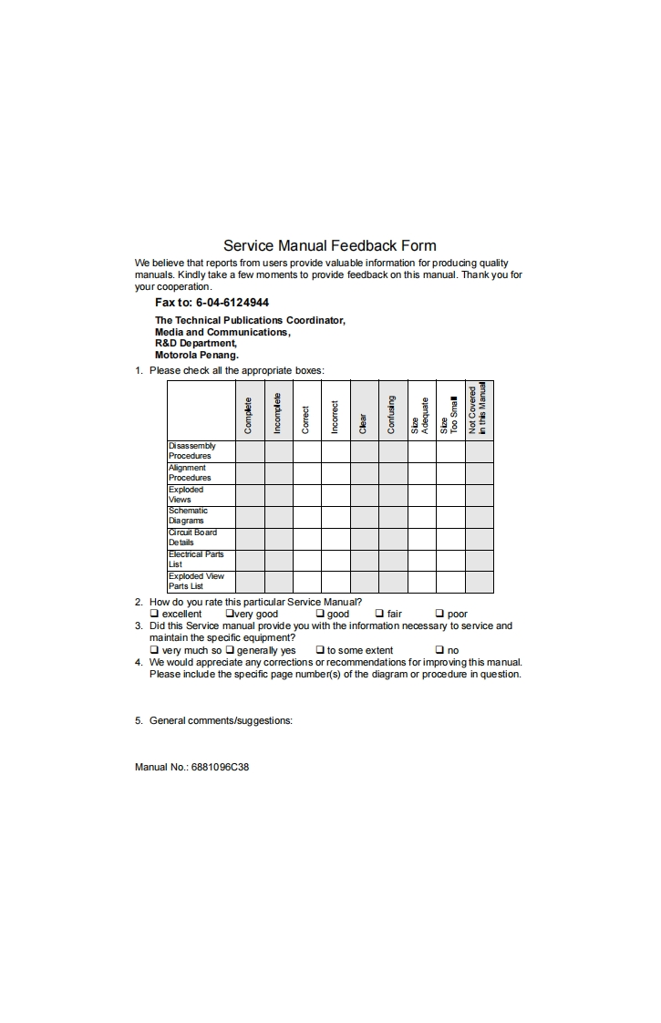 CP125_Service_Manual维修维护手册_6881096C38-B找手册网32天前发布关注私信7MB128页029CP125_Service_Manual维修维护手册_6881096C38-B此内容为付费资源,请付费后查看¥19¥21黄金会员免费钻石会员免费登录购买付费资源 第1页 / 共128页 第2页 / 共128页 第3页 / 共128页 第4页 / 共128页 第5页 / 共128页 第6页 / 共128页 第7页 / 共128页 第8页 / 共128页 第9页 / 共128页 第10页 / 共128页 试读已结束,还剩118页,您可下载完整版后进行离线阅读 THE END摩托罗拉 文本预览 Business Portable RadioService ManualVHF 136-174 MHzUHF 435-480 MHzMotorola,Inc.1301 E.Algonquin RoadSchaumburg.IL0196881096C38-B 查看更多 收起部分 喜欢就支持一下吧收藏