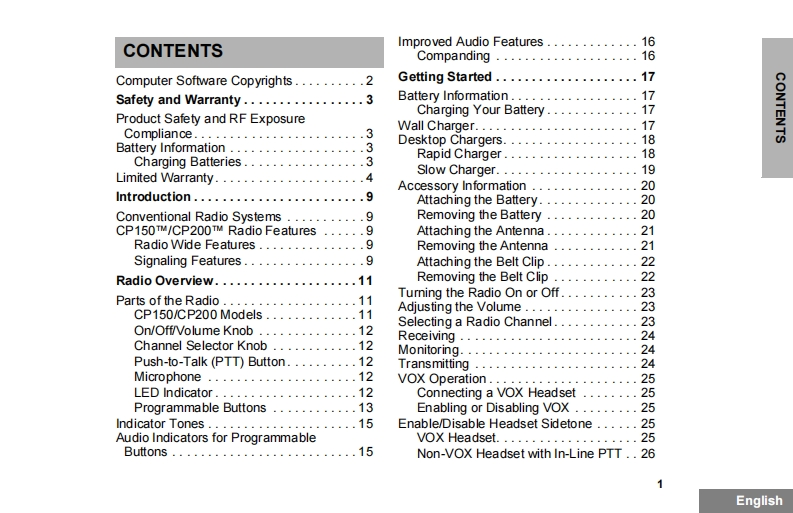 CP150_CP200_Commercial_Series_Two-Way_Radio_User_Guide_6880309N60找手册网32天前发布关注私信2.41MB88页034CP150_CP200_Commercial_Series_Two-Way_Radio_User_Guide_6880309N60此内容为付费资源,请付费后查看¥19¥21黄金会员免费钻石会员免费登录购买付费资源 第1页 / 共88页 第2页 / 共88页 第3页 / 共88页 第4页 / 共88页 第5页 / 共88页 第6页 / 共88页 第7页 / 共88页 第8页 / 共88页 第9页 / 共88页 第10页 / 共88页 试读已结束,还剩78页,您可下载完整版后进行离线阅读 THE END摩托罗拉 文本预览 MOTOROLAintelligence everywhereCP150TM/CP200TMCommercial SeriesTwo-Way Radio User GuideManuel de l'utilisateurde la radio bidirectionnelleRadiuy 查看更多 收起部分 喜欢就支持一下吧收藏