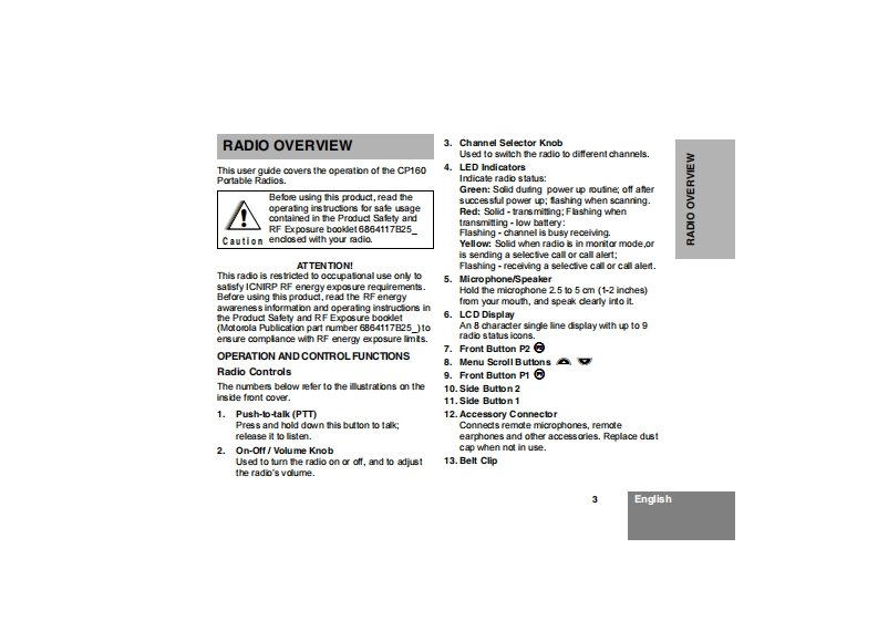 cp160_feature_user_guide操作说明书手册找手册网32天前发布关注私信0.66MB46页022cp160_feature_user_guide操作说明书手册此内容为付费资源,请付费后查看¥19¥21黄金会员免费钻石会员免费登录购买付费资源 第1页 / 共46页 第2页 / 共46页 第3页 / 共46页 第4页 / 共46页 第5页 / 共46页 第6页 / 共46页 第7页 / 共46页 第8页 / 共46页 第9页 / 共46页 第10页 / 共46页 试读已结束,还剩36页,您可下载完整版后进行离线阅读 THE END摩托罗拉 文本预览 AMOTOROLAintelligence everywhereCommercial SeriesRadio CP160User Guide6866550D05-0Issue:December 2003 查看更多 收起部分 喜欢就支持一下吧收藏