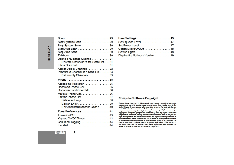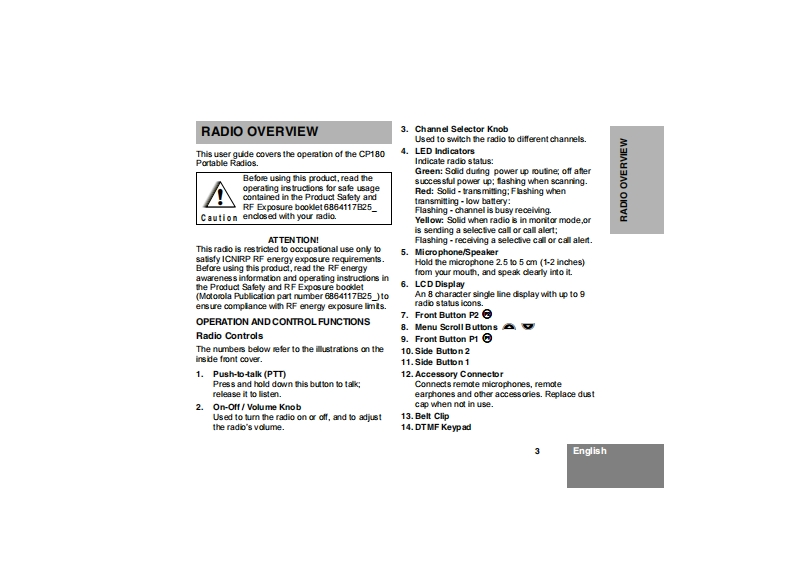 cp180_feature_user_guide操作说明书手册找手册网32天前发布关注私信0.73MB52页044cp180_feature_user_guide操作说明书手册此内容为付费资源,请付费后查看¥19¥21黄金会员免费钻石会员免费登录购买付费资源 第1页 / 共52页 第2页 / 共52页 第3页 / 共52页 第4页 / 共52页 第5页 / 共52页 第6页 / 共52页 第7页 / 共52页 第8页 / 共52页 第9页 / 共52页 第10页 / 共52页 试读已结束,还剩42页,您可下载完整版后进行离线阅读 THE END摩托罗拉 文本预览 AMOTOROLAintelligence everywhereCommercial SeriesRadio CP180User Guide6866550D08-0Issue:December 2003 查看更多 收起部分 喜欢就支持一下吧收藏