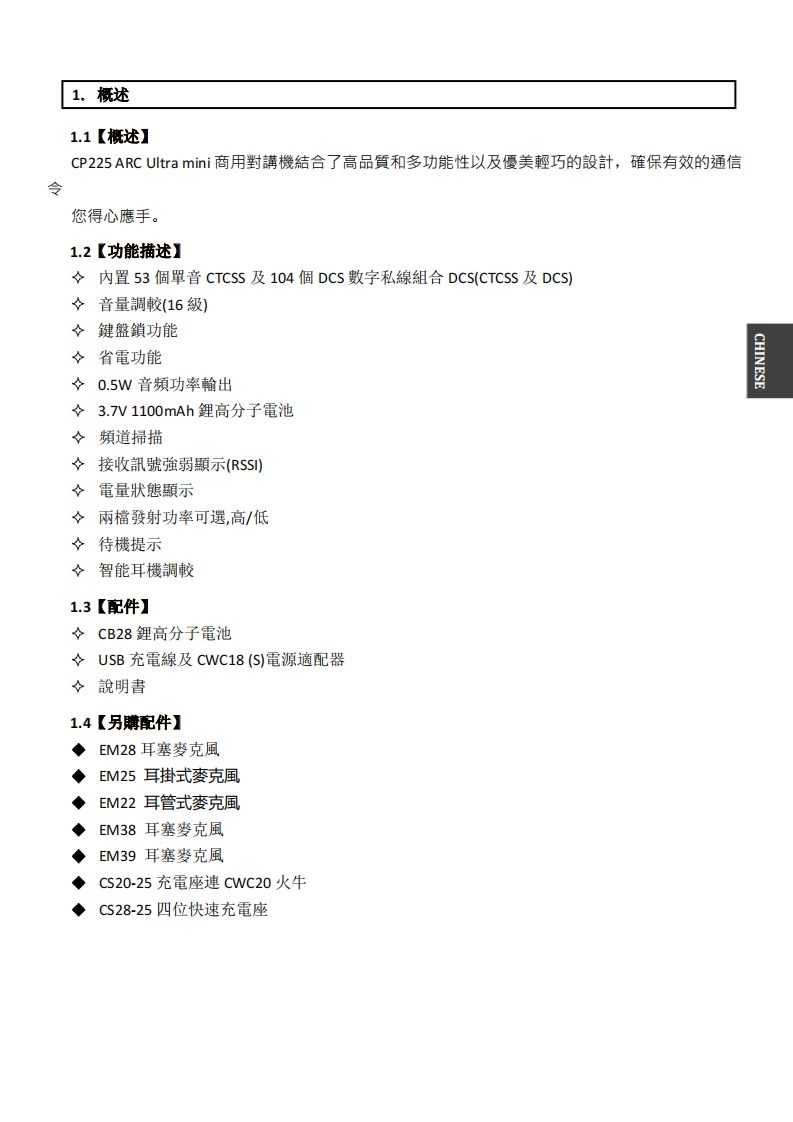 CP225S用户使用说明书手册指南找手册网32天前发布关注私信1.31MB35页044CP225S用户使用说明书手册指南此内容为付费资源,请付费后查看¥19¥21黄金会员免费钻石会员免费登录购买付费资源 第1页 / 共35页 第2页 / 共35页 第3页 / 共35页 第4页 / 共35页 第5页 / 共35页 第6页 / 共35页 第7页 / 共35页 第8页 / 共35页 第9页 / 共35页 第10页 / 共35页 试读已结束,还剩25页,您可下载完整版后进行离线阅读 THE END摩托罗拉 文本预览 CP225SMARTBUSINESSWALKIE TALKIEUSER MANUAL可0825△000000000000000000000000000000000000000000000000000000 查看更多 收起部分 喜欢就支持一下吧收藏