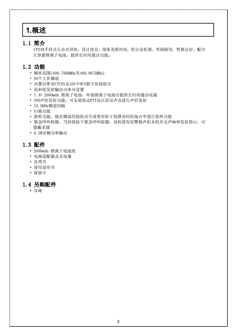 CP238用户使用说明书手册指南找手册网32天前发布关注私信0.99MB24页039CP238用户使用说明书手册指南此内容为付费资源,请付费后查看¥19¥21黄金会员免费钻石会员免费登录购买付费资源 第1页 / 共24页 第2页 / 共24页 第3页 / 共24页 第4页 / 共24页 第5页 / 共24页 第6页 / 共24页 第7页 / 共24页 第8页 / 共24页 第9页 / 共24页 第10页 / 共24页 试读已结束,还剩14页,您可下载完整版后进行离线阅读 THE END摩托罗拉 文本预览 CP238手持式公众对讲机使用说明书0 查看更多 收起部分 喜欢就支持一下吧收藏