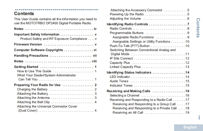 Motorola-DP2400EUHFVHF_操作说明书手册找手册网32天前发布关注私信1.48MB54页025Motorola-DP2400EUHFVHF_操作说明书手册此内容为付费资源,请付费后查看¥19¥21黄金会员免费钻石会员免费登录购买付费资源 第1页 / 共54页 第2页 / 共54页 第3页 / 共54页 第4页 / 共54页 第5页 / 共54页 第6页 / 共54页 第7页 / 共54页 第8页 / 共54页 第9页 / 共54页 第10页 / 共54页 试读已结束,还剩44页,您可下载完整版后进行离线阅读 THE END摩托罗拉 文本预览 从PROFESSIONAL DIGITAL TWO-WAY RADIOMOTOTRBOTMDP2400NON-DISPLAY PORTABLEUSER GUIDE④MOTOROLA 查看更多 收起部分 喜欢就支持一下吧收藏