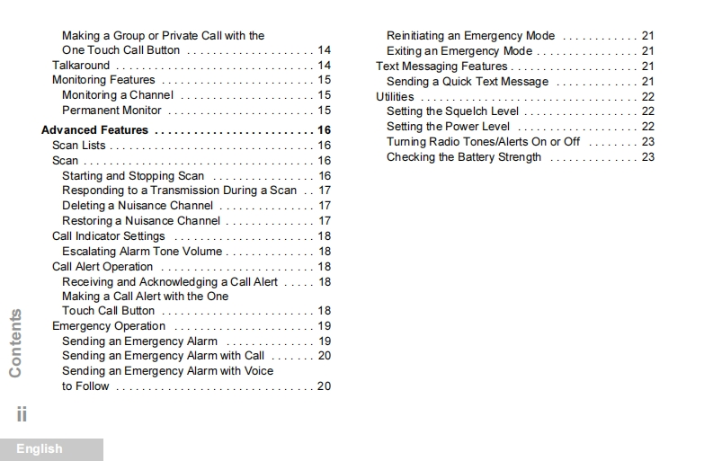 Motorola-DP3400用户使用操作说明书手册找手册网32天前发布关注私信4.31MB30页029Motorola-DP3400用户使用操作说明书手册此内容为付费资源,请付费后查看¥19¥21黄金会员免费钻石会员免费登录购买付费资源 第1页 / 共30页 第2页 / 共30页 第3页 / 共30页 第4页 / 共30页 第5页 / 共30页 第6页 / 共30页 第7页 / 共30页 第8页 / 共30页 第9页 / 共30页 第10页 / 共30页 试读已结束,还剩20页,您可下载完整版后进行离线阅读 THE END摩托罗拉 文本预览 Profes sional Digital Two-Way Radio SystemMOTOTRBO DP 3400 /DP 3401Non-Display PortableUser GuideMOTOROLAMobrola DP 3400 查看更多 收起部分 喜欢就支持一下吧收藏