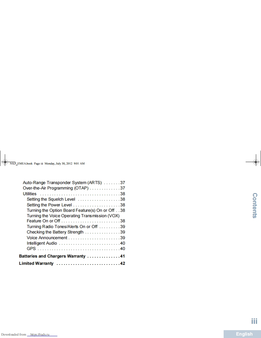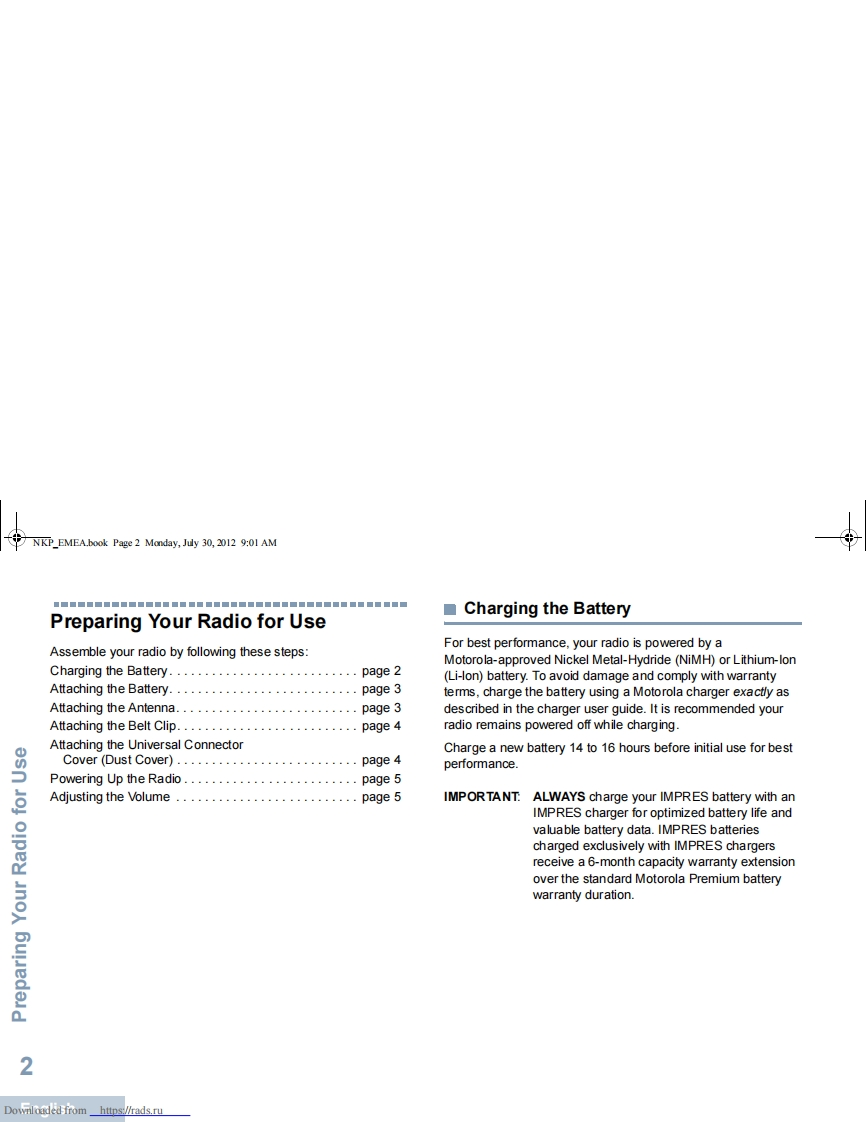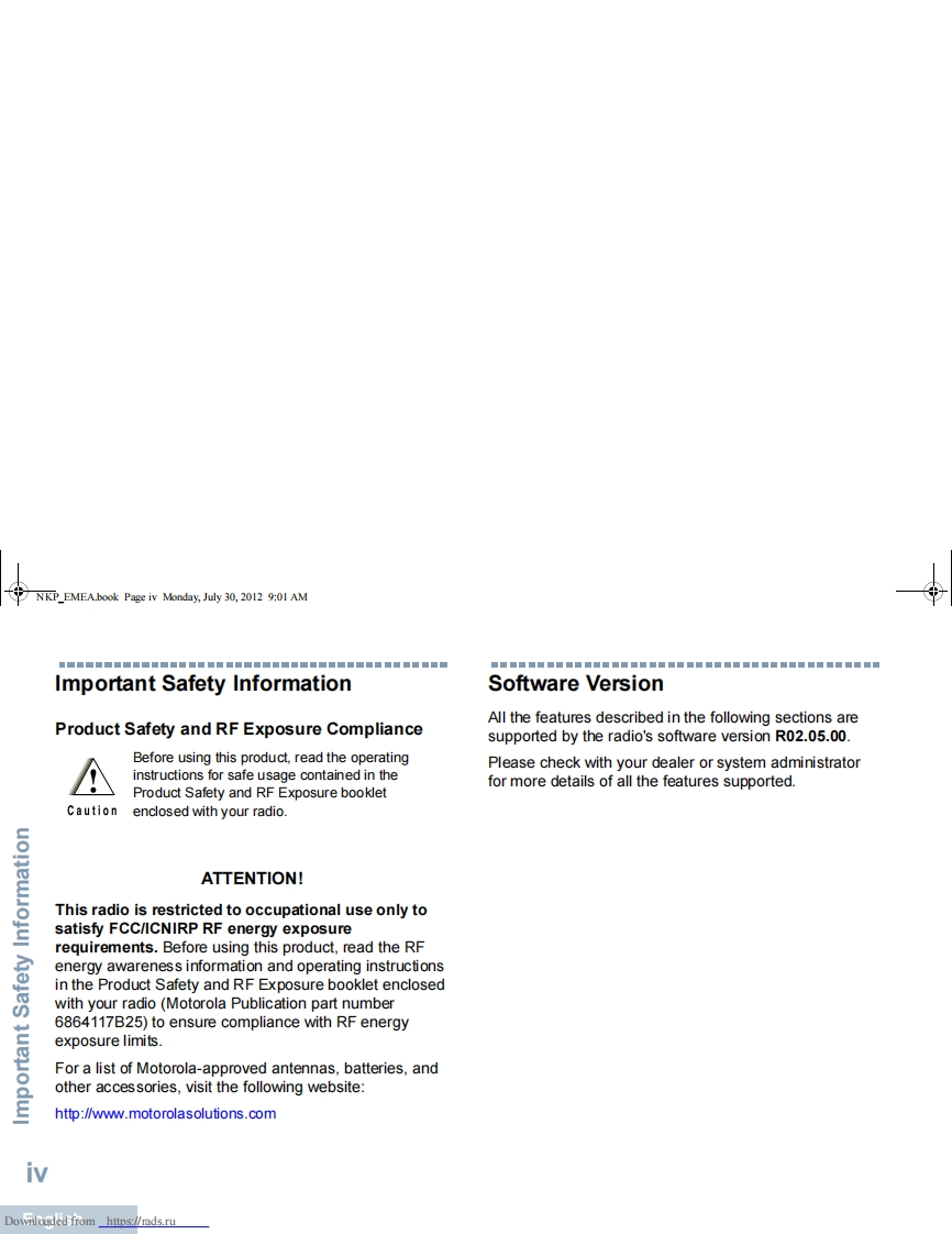 Motorola-DP4400操作说明书手册找手册网32天前发布关注私信5.22MB205页049Motorola-DP4400操作说明书手册此内容为付费资源,请付费后查看¥19¥21黄金会员免费钻石会员免费登录购买付费资源 第1页 / 共205页 第2页 / 共205页 第3页 / 共205页 第4页 / 共205页 第5页 / 共205页 第6页 / 共205页 第7页 / 共205页 第8页 / 共205页 第9页 / 共205页 第10页 / 共205页 试读已结束,还剩195页,您可下载完整版后进行离线阅读 THE END摩托罗拉 文本预览 APROFESSIONAL DIGITAL TWO-WAY RADIOMOTOTRBOTMDP4400/DP4401NON-DISPLAY PORTABLEUSER GUIDEMOTOROLENDERT○○○●Downl oaded from https://rads.ru 查看更多 收起部分 喜欢就支持一下吧收藏