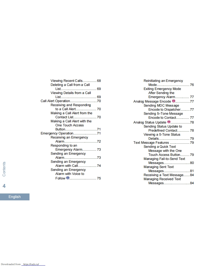 Motorola-DP4600操作说明书手册找手册网32天前发布关注私信3.41MB225页051Motorola-DP4600操作说明书手册此内容为付费资源,请付费后查看¥19¥21黄金会员免费钻石会员免费登录购买付费资源 第1页 / 共225页 第2页 / 共225页 第3页 / 共225页 第4页 / 共225页 第5页 / 共225页 第6页 / 共225页 第7页 / 共225页 第8页 / 共225页 第9页 / 共225页 第10页 / 共225页 试读已结束,还剩215页,您可下载完整版后进行离线阅读 THE END摩托罗拉 文本预览 APROFESSIONAL DIGITAL TWO-WAY RADIOMOTOTRBOTMDP4600/DP4601MONO DISPLAY PORTABLEUSER GUIDEMOTOROLen de-DE fr-FR it-IT es-ES tr pl ru arDownloaded from https://rads.ru 查看更多 收起部分 喜欢就支持一下吧收藏